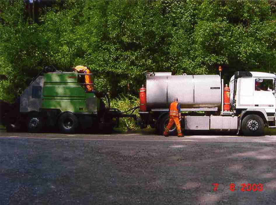 Also bei uns wird das sofort von einem LKW mit "Teerkocher" auf die Straße gespritzt. Heißen aber bei uns Reptwagen (hoffentlich richtig geschrieben).