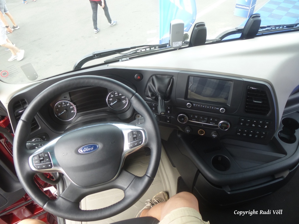 Aus meiner Sicht war die Präsentation der neuen Schwerfahrzeuge von Ford durchaus beeindruckend. Gebaut werden diese bei Otosan in der Türkei. Die beiden ausgestellten Sattelzugmaschinen waren aus der Vorserie und ein paar Details fehlten noch (Vorhänge zum Beispiel).