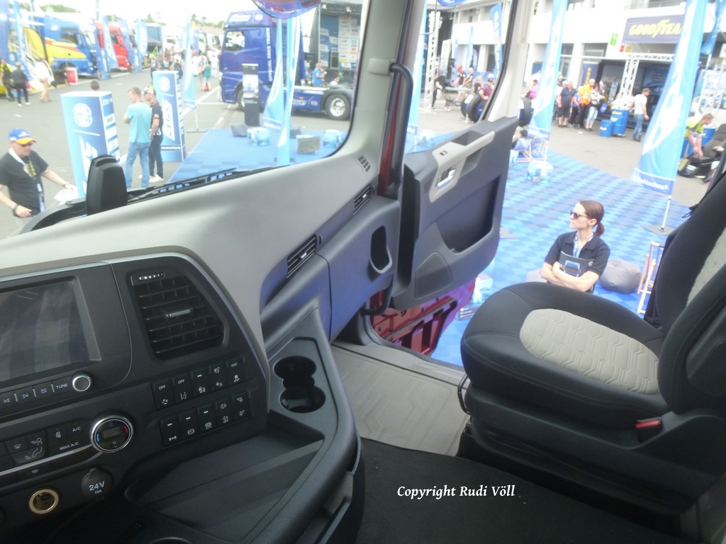 Tja, wie er so da stand, habe ich mir die Gelegenheit auch nicht nehmen lassen, ein paar Bilder zu machen und auch mal einzusteigen. Bin ja kein LKW-Fahrer, aber ich fand ihn nicht schlecht.