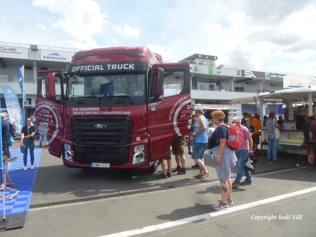 letzten Sonntag beim Truck Grand Prix am Nürburgring waren zu meiner großen Überrraschung auch zwei F-Max anwesend. Auch wenn er ja (noch) nicht in Westeuropa vermarktet wird, scheint den Verantwortlichen bei Ford doch der Truck Grand Prix ein gutes Publikum abzugeben, um schon mal ein wenig vor zu fühlen, wie er denn bei Fahrern und Unternehmern ankommt. Immerhin ist der F-Max auch "Official Truck" des FIA European Truck Racing Championship.