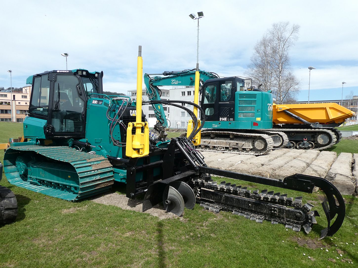 D3K 2 LGP mit Schnellwechsler und Grabenfräse für den Sportplatzbau