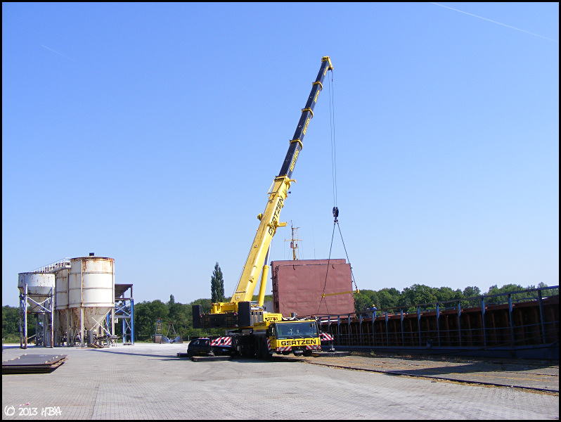 der Gittermastkran müsste der ehemalige Kran K 6oo1 der Fa. Paul Rosenkranz gewesen sein. Eine Eigenkonstruktion der Firma.