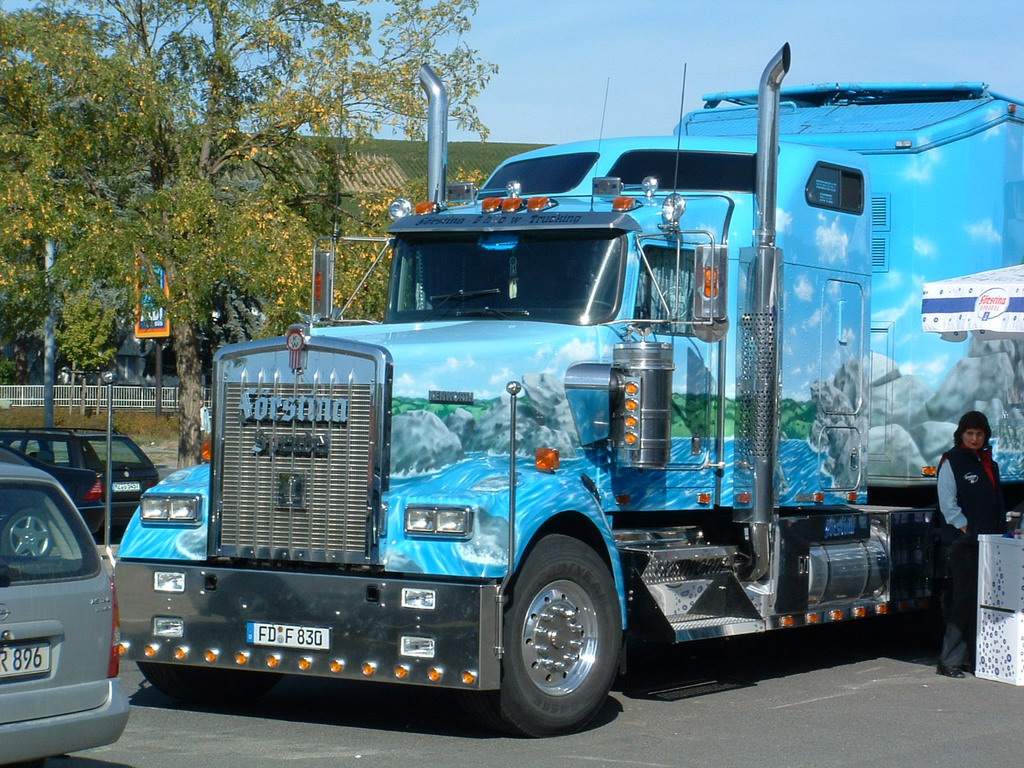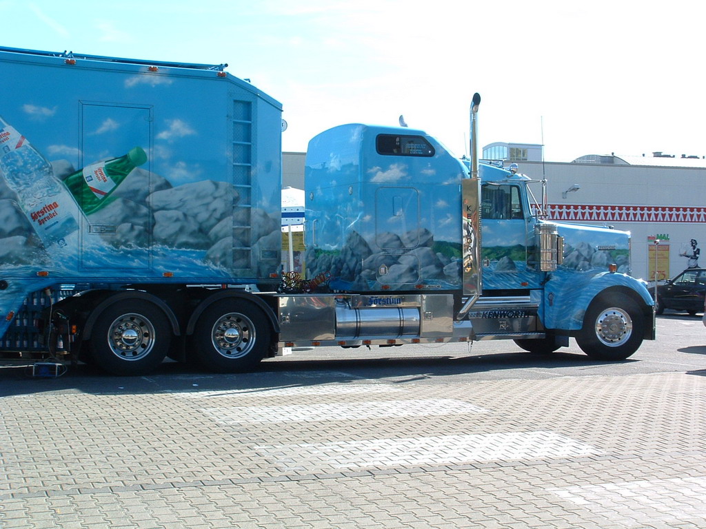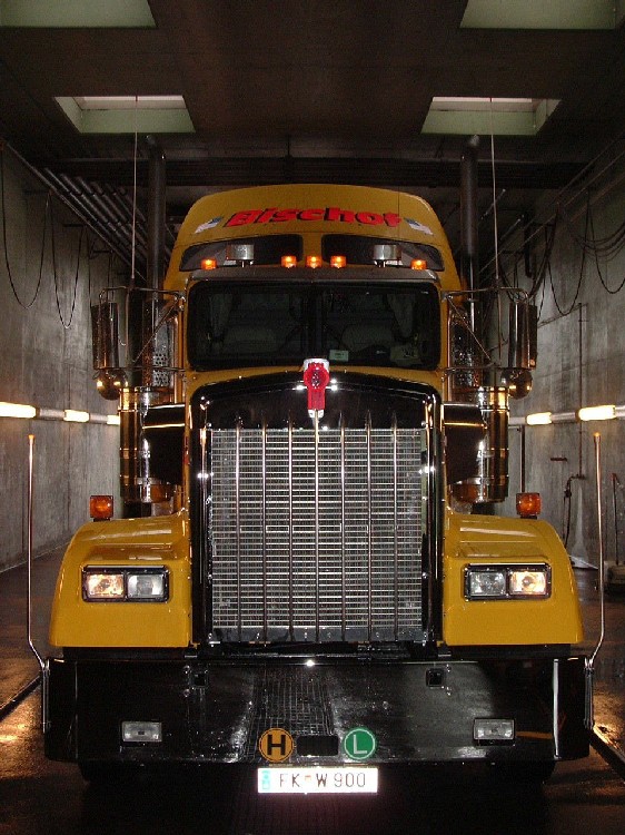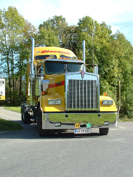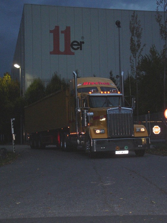 Es handelt sich dabei um einen Kenni W 900 dreiachs Zugmaschine mit grossem Fernverkehrshaus. Dieses Fahrzeug wurde von unserem Chef als Hobby angeschafft und fährt entweder mit einem Tankauflieger für die eigene Tankstelle oder mit einer Mulde für Schrott oder Kartoffeln für die Firma "11er" >Nahrungsmittel.