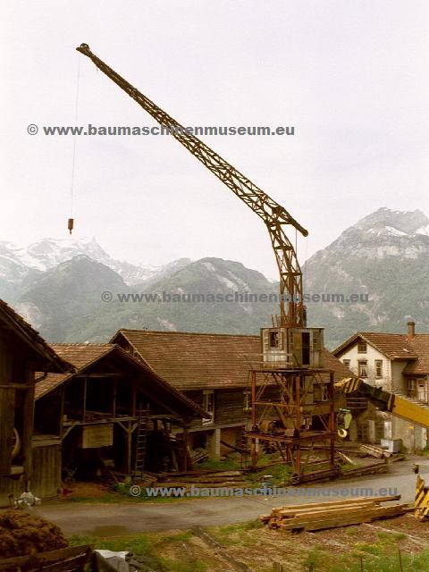 Bei dieser Baumaschinenkonstruktion handelt es sich um den ersten echten Bau-/Turmdrehkran mit Mehrmotorenantrieb überhaupt und den heute ältesten Baukran weltweit!