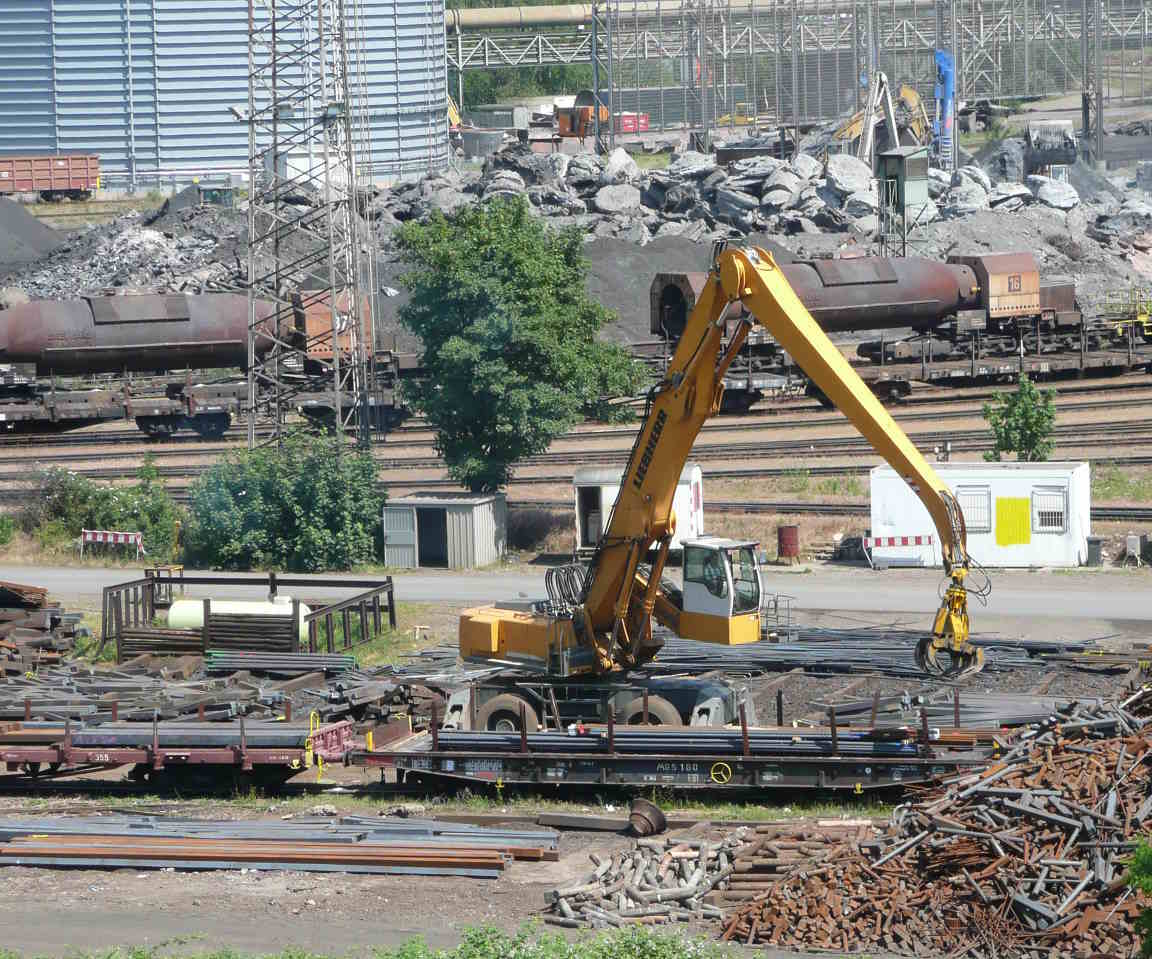 Umschlaggerät im Einsatz auf einer Schlackenhalde 954B
