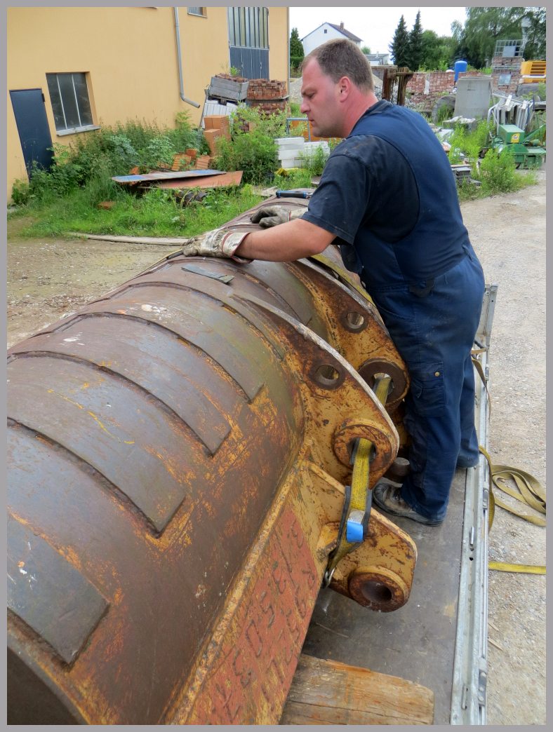 Ein neues Teil gibts jedoch schon dazu.... Andi hat letzte Woche von einem Händler in Saarlouis einen 3,5m³ Tieflöffel geholt. Der Löffel ist genau der, welcher zuvor an dem roten R962 der Fa. A. Schmidt lief. ( Zu sehen in diesem tollen Video: Liebherr R962 beim U-Bahn Bau von Benjamin Beytekin