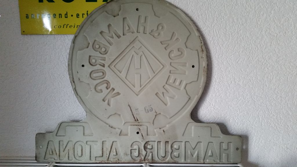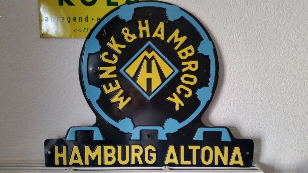 Ich verkaufe hier gegen Höchtsgebot ein sehr seltenes Schild des Seilbagger Herstellers Menck & Hambrock Altona. Das Schild war ursprünglich an den Baggern montiert. Es ist in einem erstaunlich guten Zustand und hat wenig Gebrauchsspuren. Herstellung war wohl lt. eines Stempels auf der Rückseite im Mai 1965.