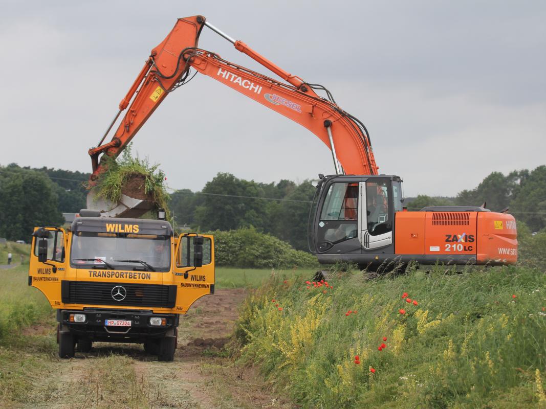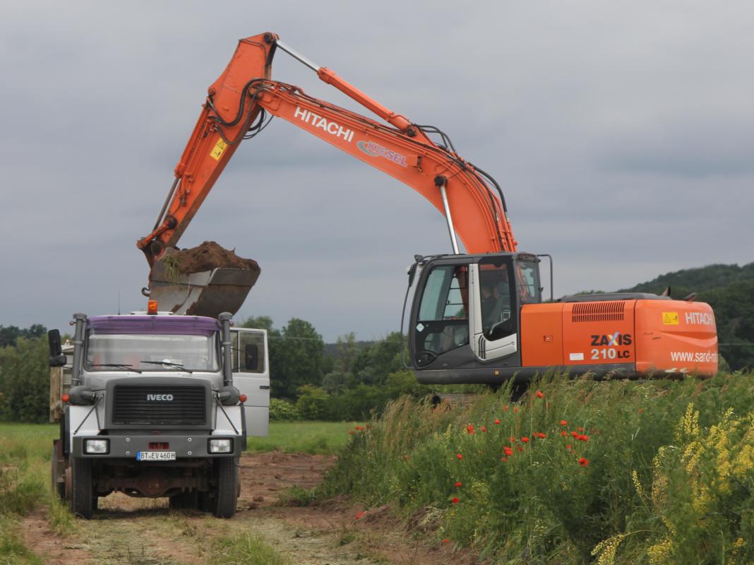 Am Freitag war zu einer Miete aufgeschüttetes Erdreich abzutragen, zu verladen und in das in kurzer Entfernung befindliche Kieswerk zu transportieren und dort abzukippen.