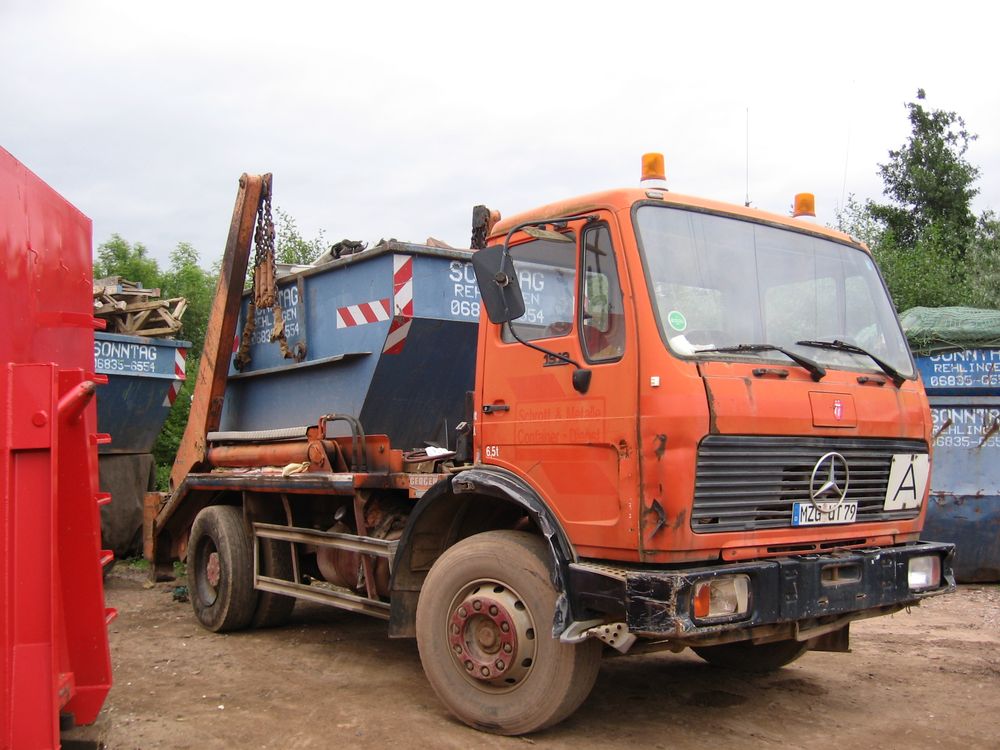 Absetzkipper auf mittelschwerem Mercedes-Benz Kurzhauber