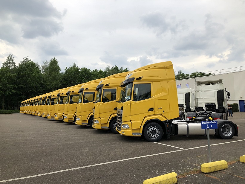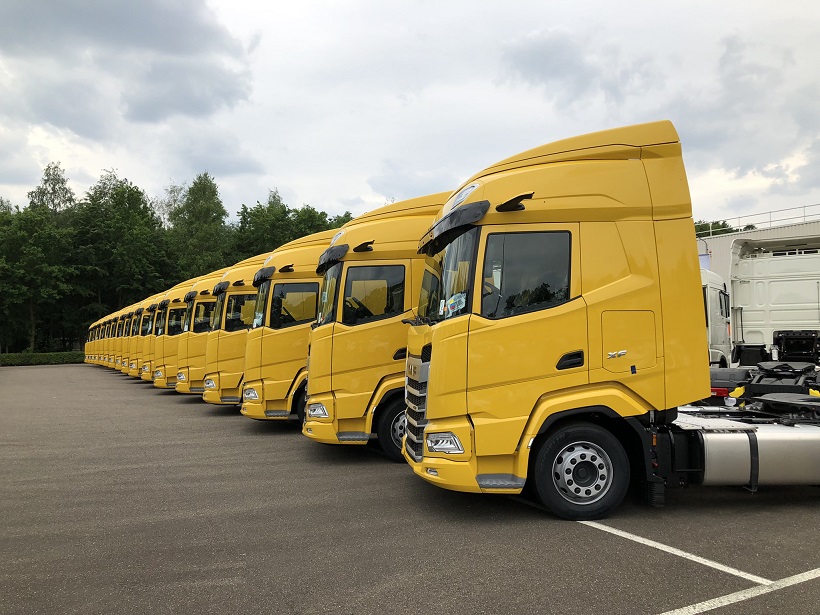 Was die Reihe gelber Zugmaschinen angeht, denkt Ihr alle - glaube ich - zu weit. Es gibt nämlich in den Niederlanden eine große Supermarkt-Kette namens Yumbo. Die kaufen immer mal so 40-50 Zugmaschinen auf einen Schlag, um ihren Fuhrpark aufzufrischen. ich meine, vor zwei Wochen in Montfort auf dem Oldtimertreffen hätte das jemand erzählt, bin aber nicht ganz sicher. Da würde es auf jeden Fall gut hinkommen mit der "kleinen" XF-Kabine. Für nationale Supermarkt-Distribution baucht man nun wirklich keinen XG oder XG+