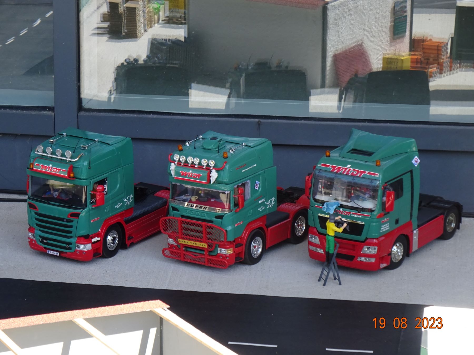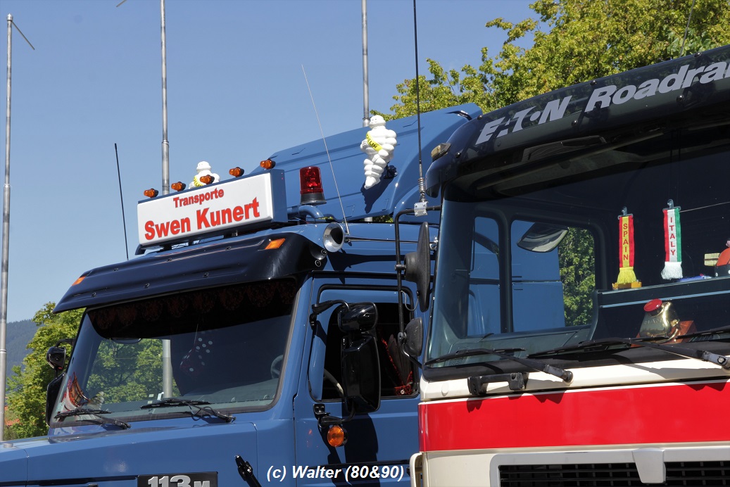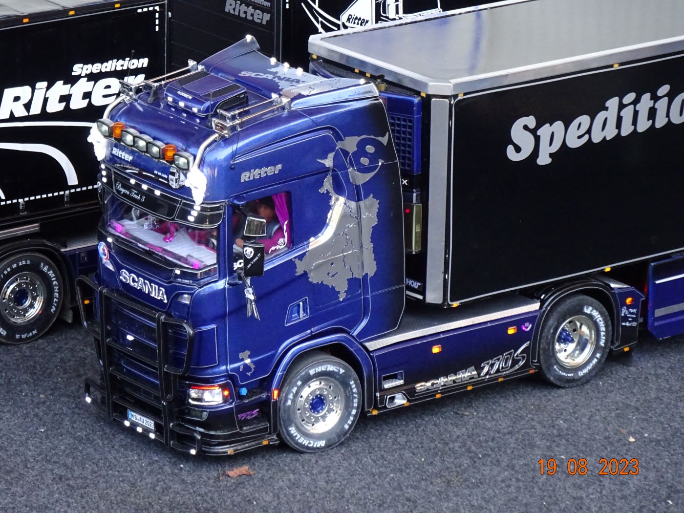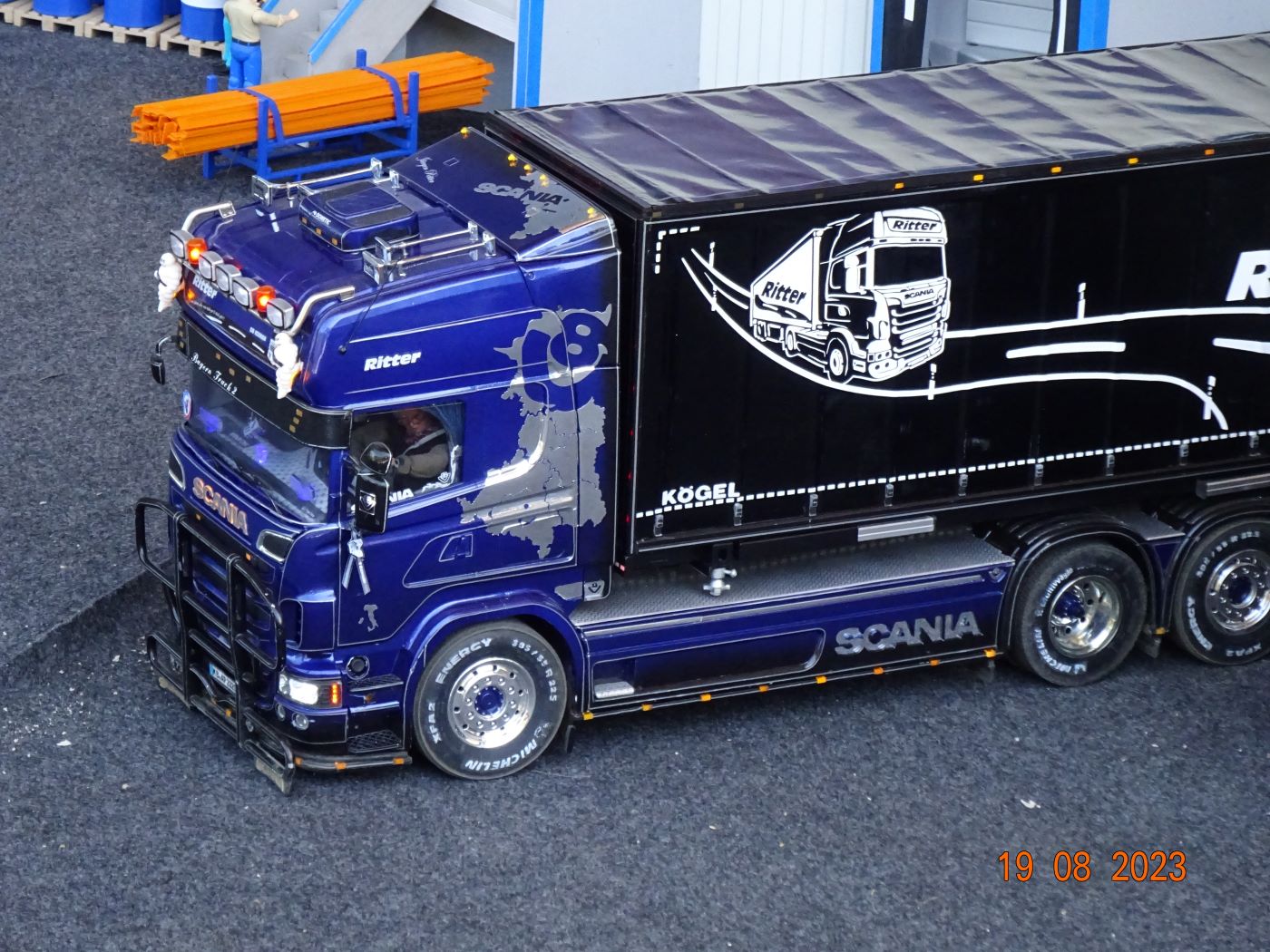ja, die Modelltrucks waren schon ein Erlebnis. Vor allem die blauen "Ritter"-Trucks. Optisch wunderbar gestaltet, aber auch mit diversen Sonderfunktionen wie z.B. das Öffnen der Schiebeplane, oder das Hochfahren der Luftfederung und das Einklappen der WB-Stützen nach dem Aufbrücken. Oder auch akustisch: der Hund auf dem Beifahrersitz eines der Scanias bewegte sich und bellte!