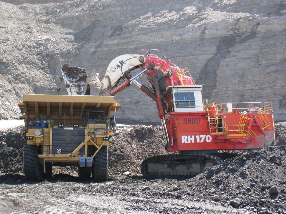 Ein RH 170 beim Beladen einer CAT-Mulde in Australien
