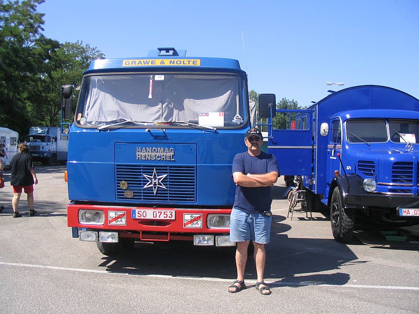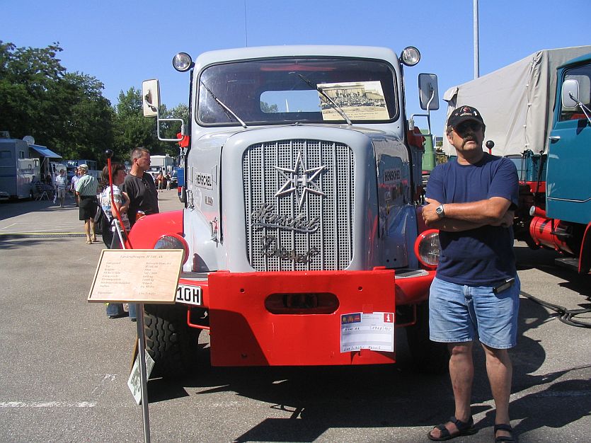 der Spruch auf dem Henschel war ein offizieller Werbeslogan von Henschel!! Den hat der Hippel (Besitzer des Lkw´s )von einem alten Prospekt übernommen und auf die Plane drucken lassen