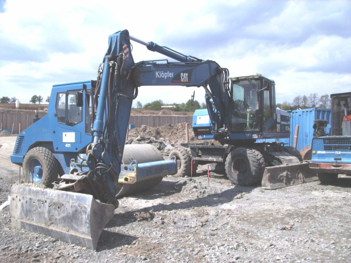 CAT M318 auf einer Autobahn Baustelle