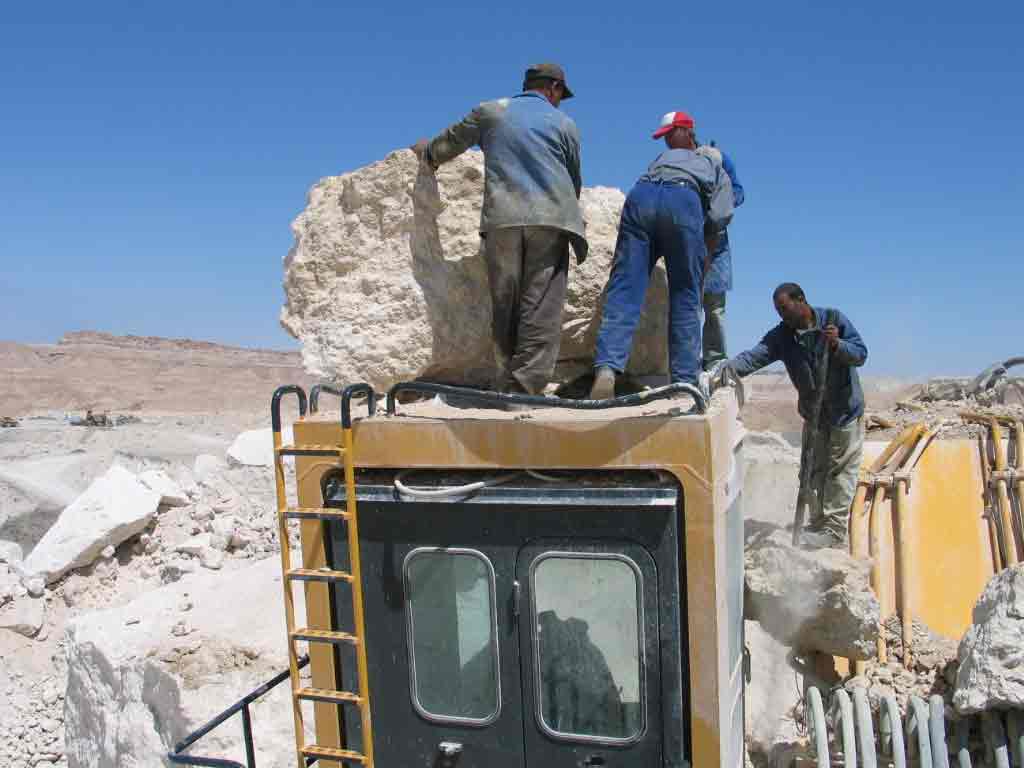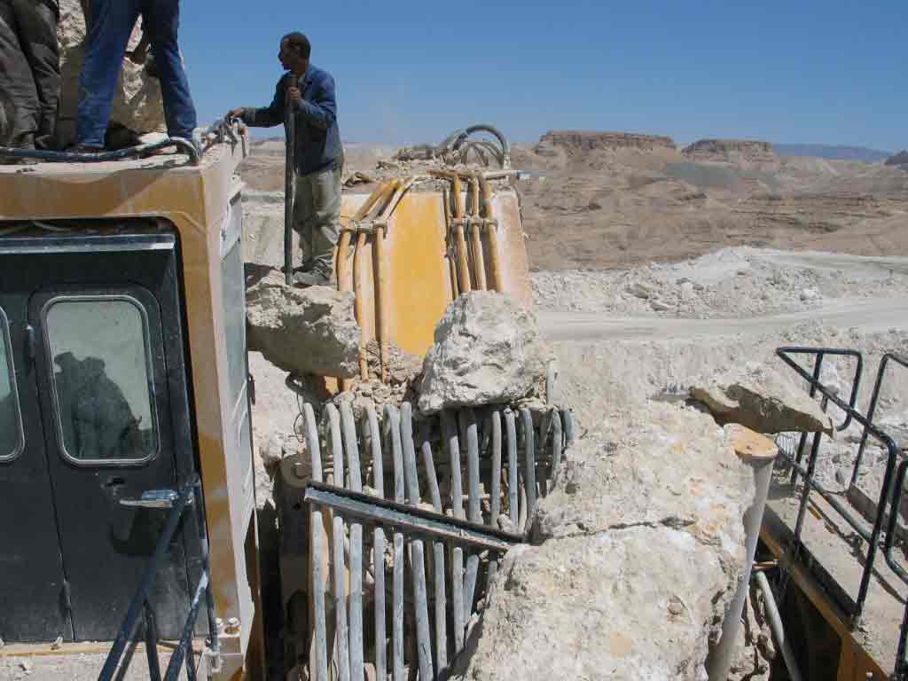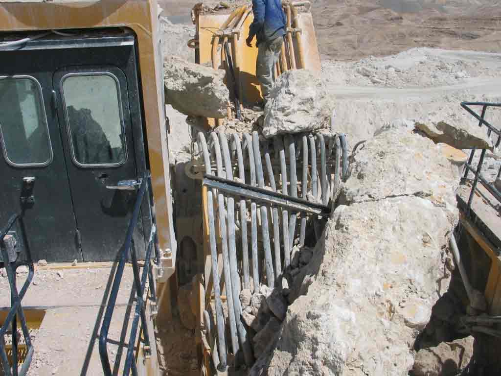 Trotz Felsen der Bagger hält