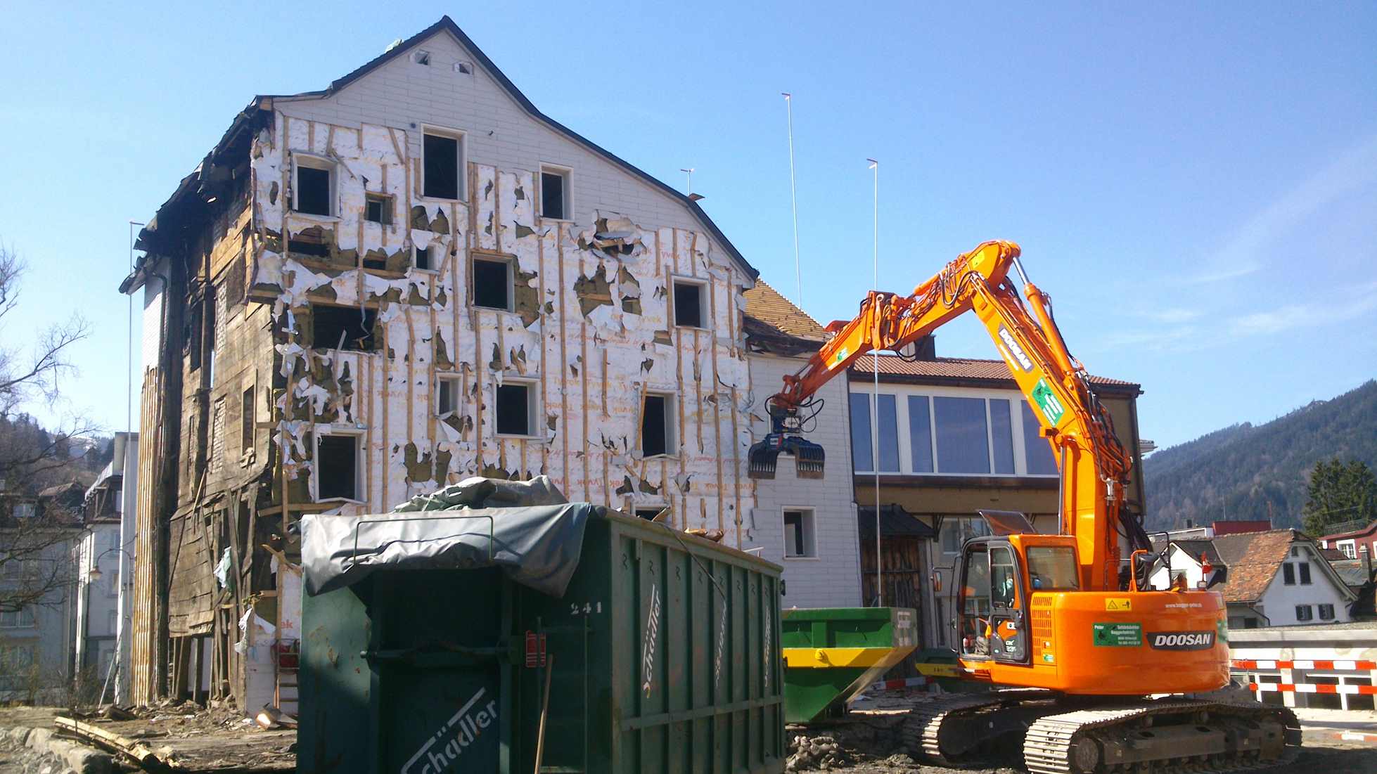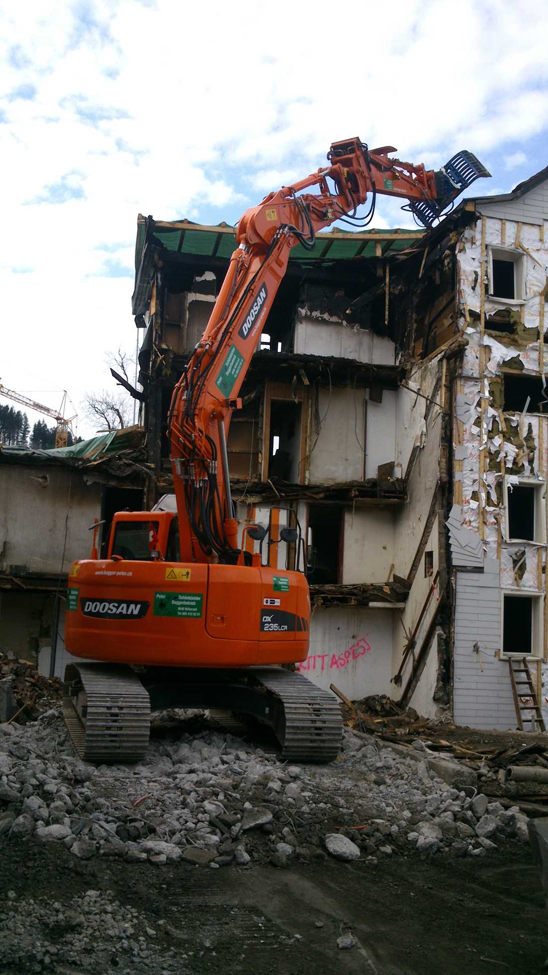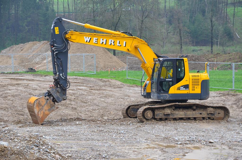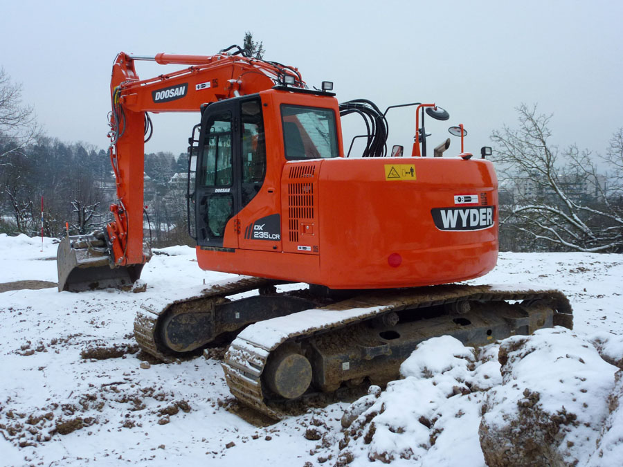 Nun stehe der Doosan DX 235 LCR von firma Buijtenhuis aus Nijkerk auf eine baustelle.(NL)