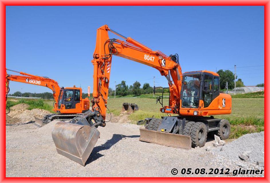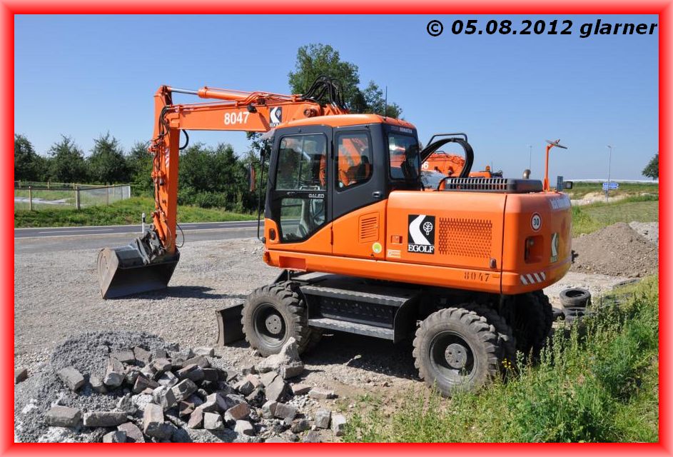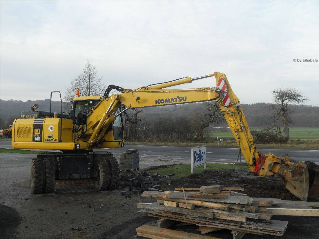 PW 140-7 vom Bauunternehmen Bauer mit Bandenmarkt Reifen