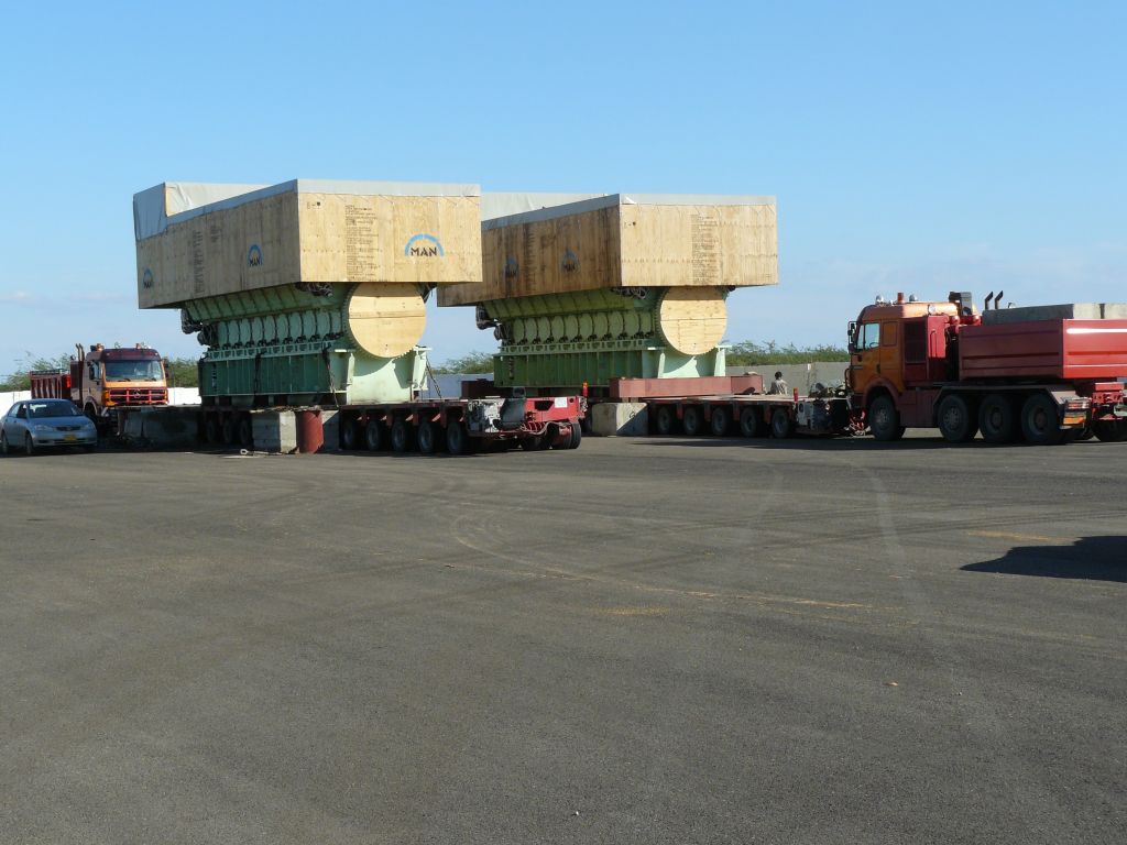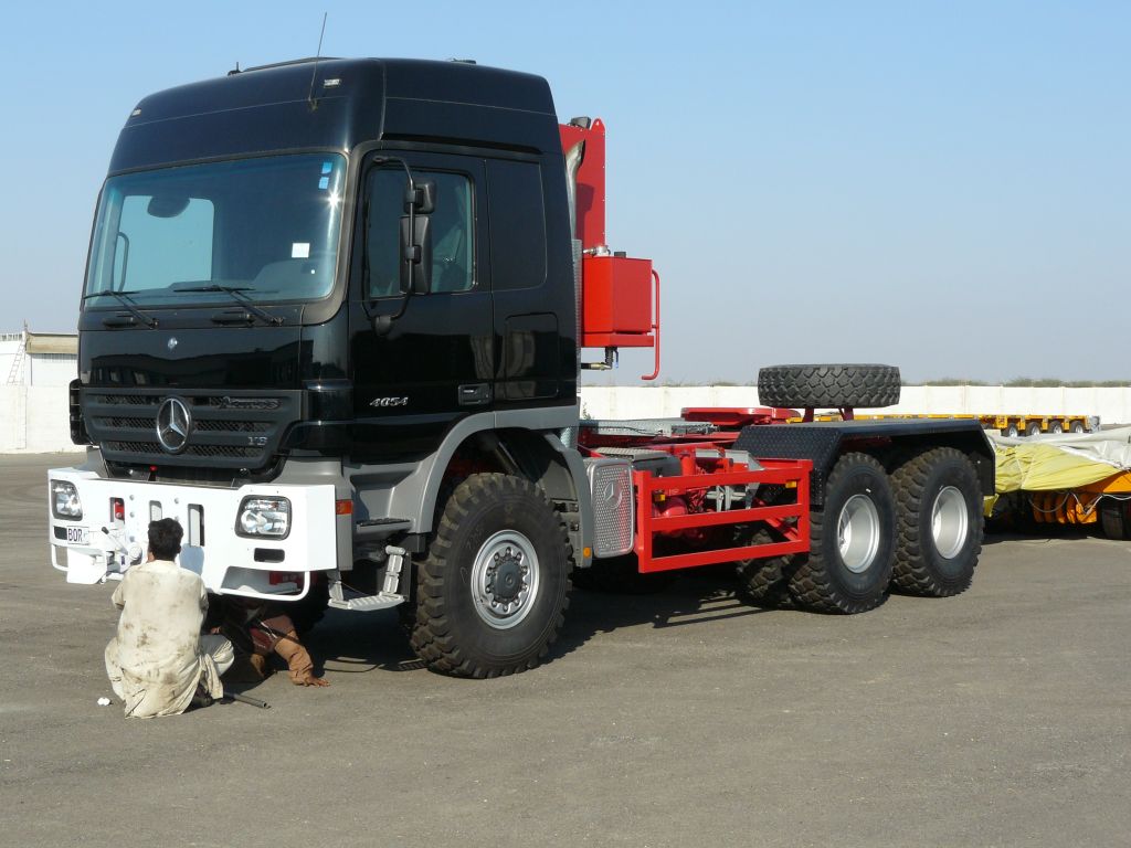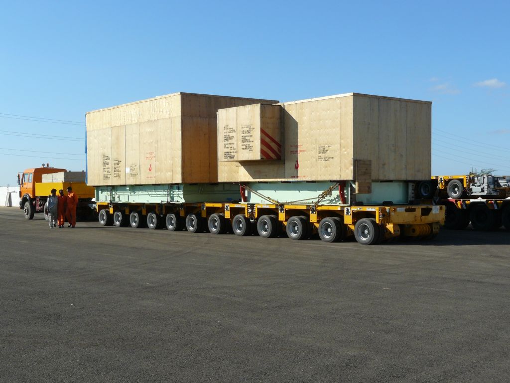 Die hydraulischen Achsen bauen wir auf der Baustelle auseinander und schicken die einzelnen Module mit normalen, lokalen Flat-Bads vom Markt zurueck, aber auch jeweils mit 2 Fahrern 'drauf um Tempo zu machen.