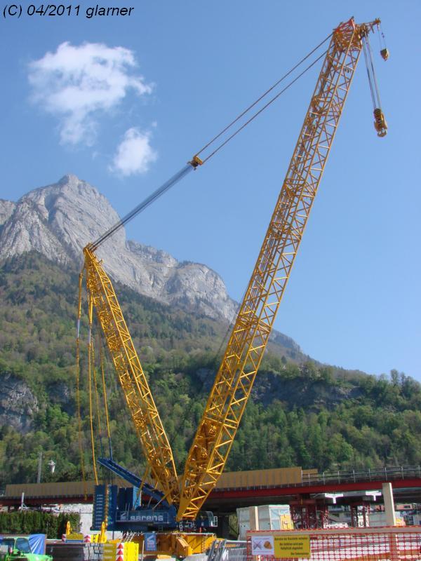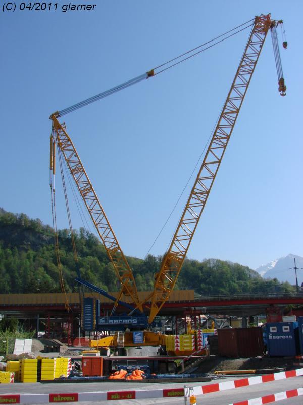 Der Kran hebt am kommenden Wochenende eine Autobahnbrücke in der Schweiz aus bezw. am Osterwochenende die neue Brücke ein.