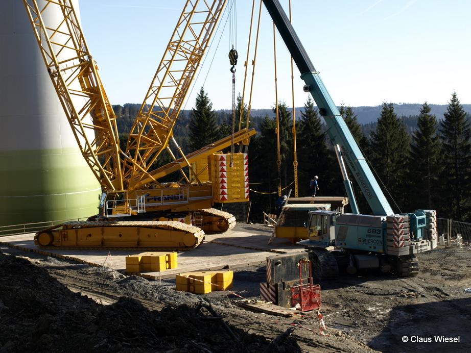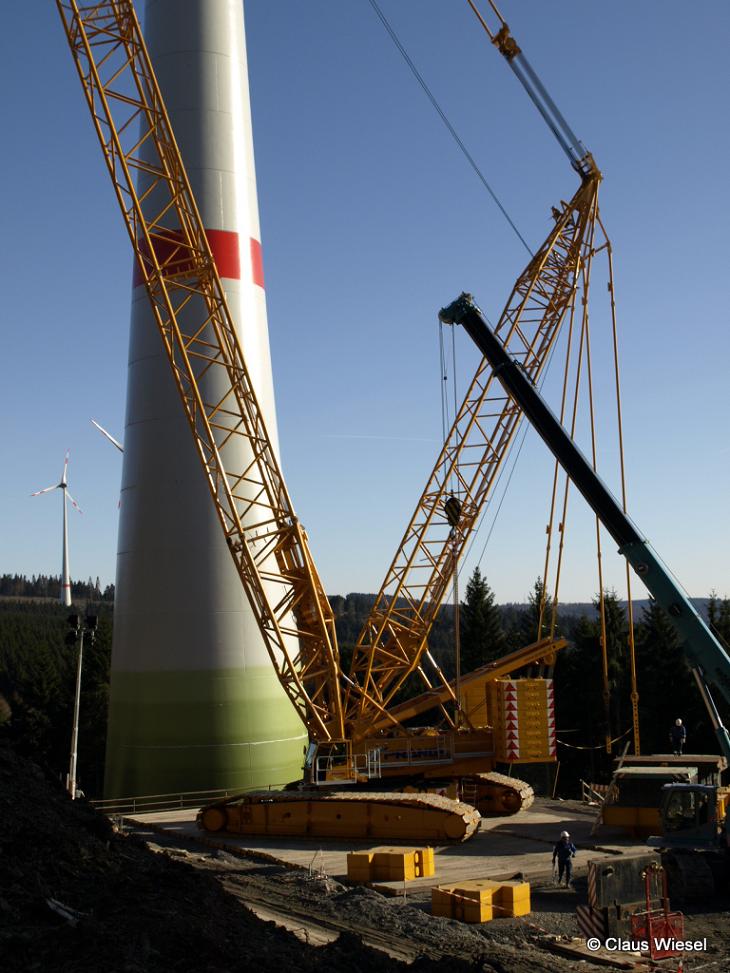 beim Aufbau eines Windrads im Windpark Hilchenbach / Siegerland.