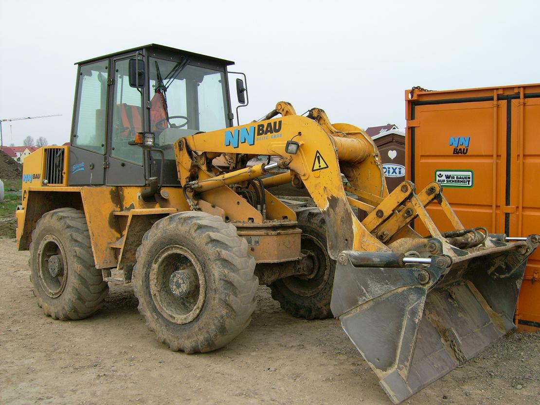 Ahlmann AL7D. Beide Lader gehören der Oskar Vogel Bau aus Eimeldingen. Der eine arbeitete im Sommer 2002 bei einer Neubaugebietserschließung 100 m vor meiner Haustür, der andere bei der Fertigstellung des Autobahnanschlusses der A98 im November 2002.