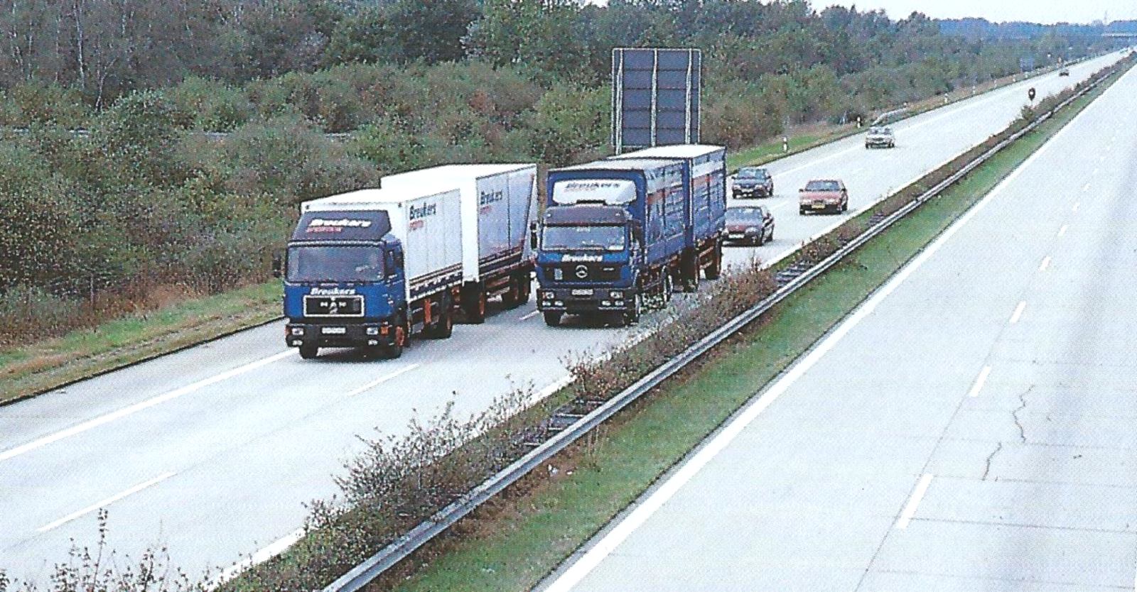 Der erste BREUKERS Lkw den ich hier zeigen möchte ist ein MAN F90 in der klassischen Version mit 3achs Motorwagen und 3achs-Kofferanhänger .Außerdem wurde die Auspuffanlage nach vorne verlegt,damit auch Gefahrgutstoffe transportiert werden konnten.