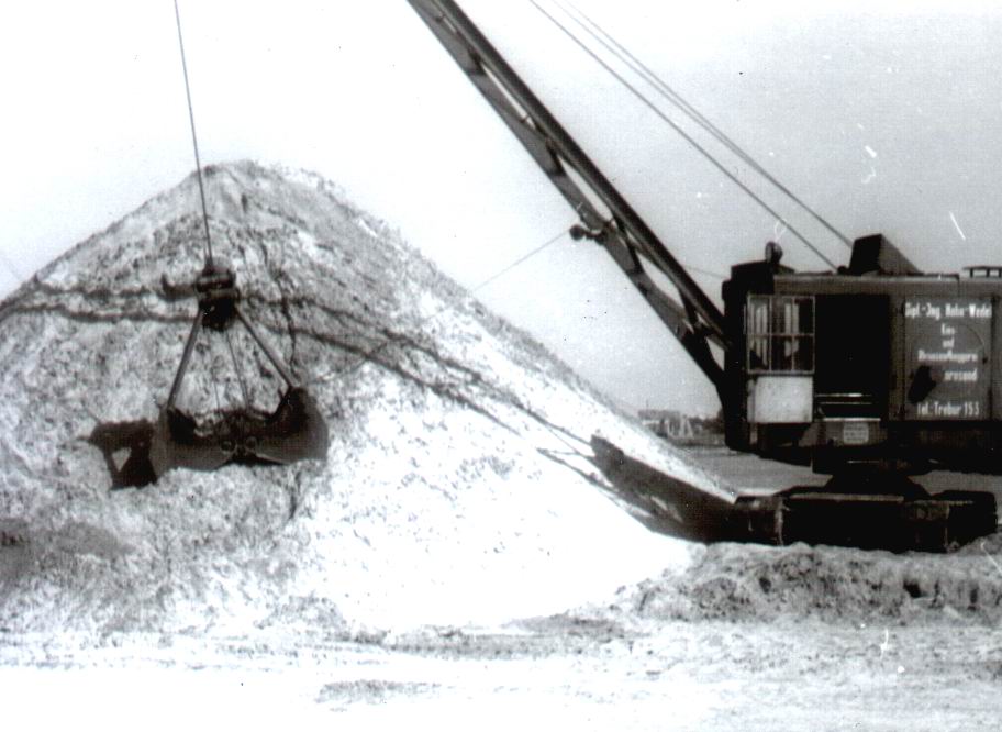 Nachdem mir gestern zwei alte Fotos geschenkt wurden von einem Gerät, das mir vor 25 Jahren das erste mal unter die Linse gelaufen ist und leider vor einiger Zeit das Zeitliche gesegnet hat, denke ich, es ist Zeit, auch für diesen, in nur 13 Exemplaren gebauten "Ford Edsel" unter den Menck Baggern eine Sammlung zu eröffnen, vielleicht kommen ja noch Bilder von anderen dazu. Wirklich viele scheint es ja wohl nicht mehr zu geben (3?), aber wer's braucht, der noch laufende Motor von dem Gerät existiert noch und wäre (ich vermute günstig) an Selbstabholer zu verkaufen. Ich hab immerhin das total verrostete Menck Schild retten können und das bleibt auch so, wie es ist. Die Farbe des Baggers war übrigens, auch wenn es anders scheint, blau, grün wurde er durch den vielen Rost. Er stammt etwa aus September 1956 - die Maschinennummer hab ich noch nicht - und wurde 5 (!) Jahre später noch mit einer Schürfkübelausrüstung (48115) versehen.
