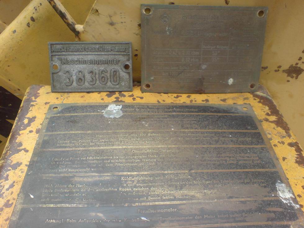 ...und heute ist zufällig das hier aufgetaucht: Die Maschinennummer 38360 aus 1956 samt Lasttafel und auch der Greifer steht noch rum - 38362. Dann hatte der Ausleger vielleicht 38361, oder ein Schürfkübel, den ich aber noch nicht gefunden habe. Immerhin ist die Identität des "Toten" jetzt geklärt.