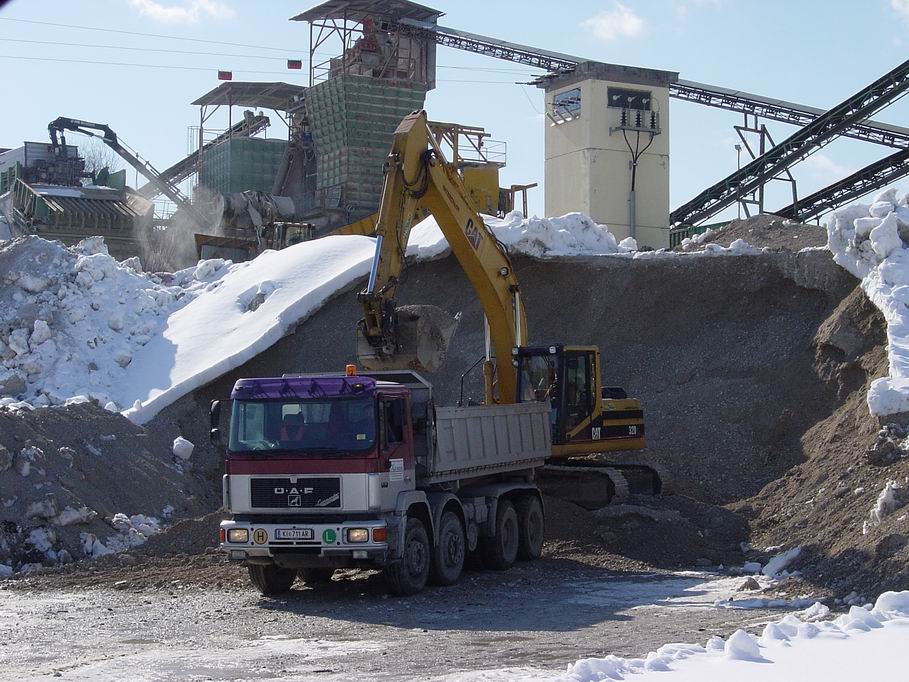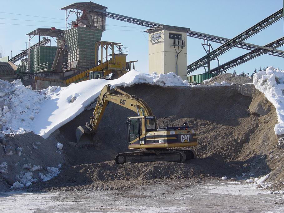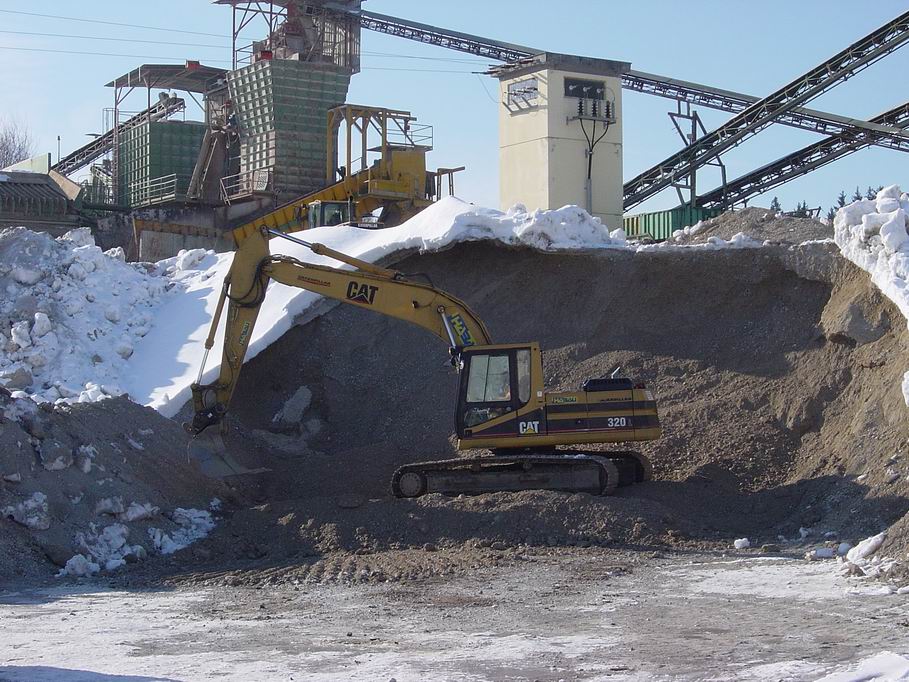 CAT 320 L auf einer neu angelegten Bauschuttdeponie in einer Kiesgrube