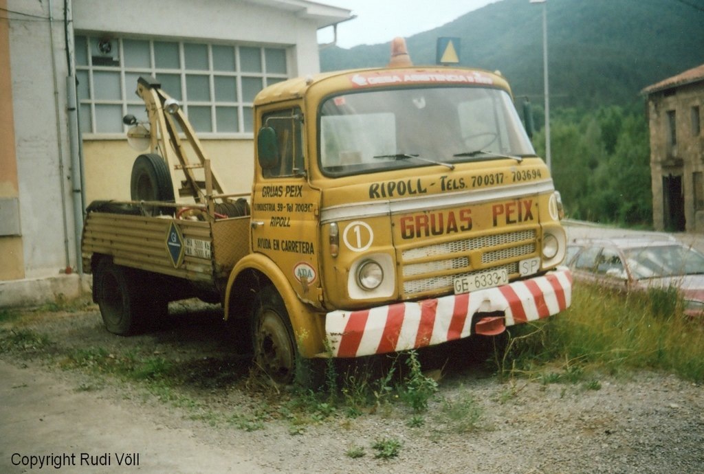 nach den großen Typen jetzt von mir mal ein älterer Mittelklasse-Barreiros, der als Abschleppwagen der Firma Gruas Peix im August 2007 in Ripoll in den Spanischen Pyrenäen von mir abgelichtet wurde. Es ist der einzige Barreiros, den ich bisher gesehen habe