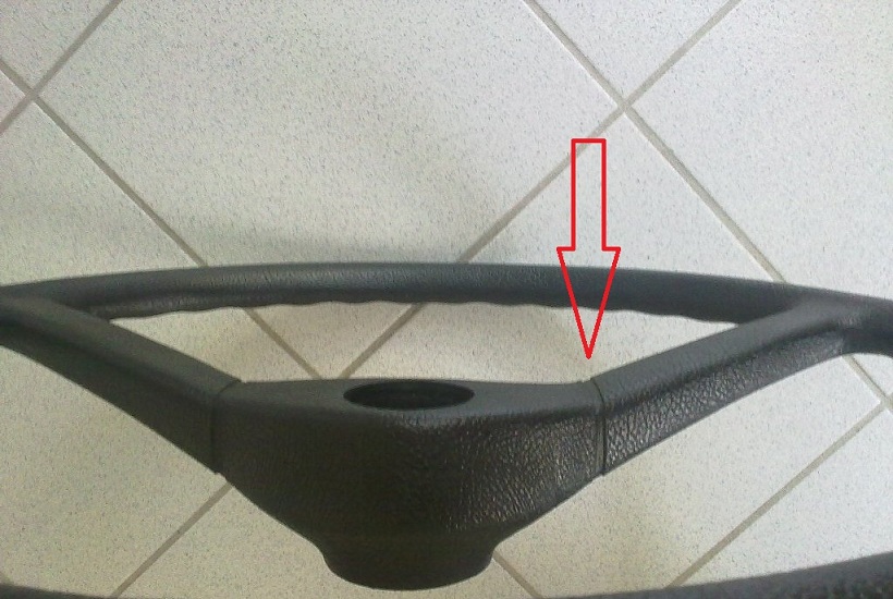| Für ein original Lenkrad sieht die Narbung sehr grob aus, auch ist auf der Innenseite bei der Verzahnung kein Mercedes Stern eingestanzt. |