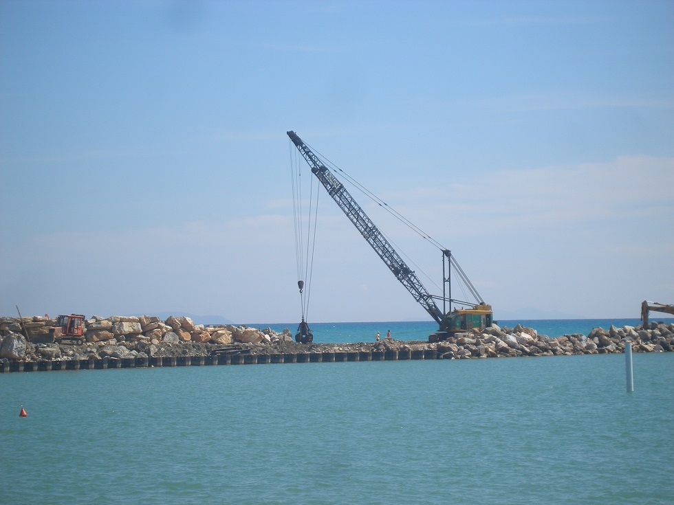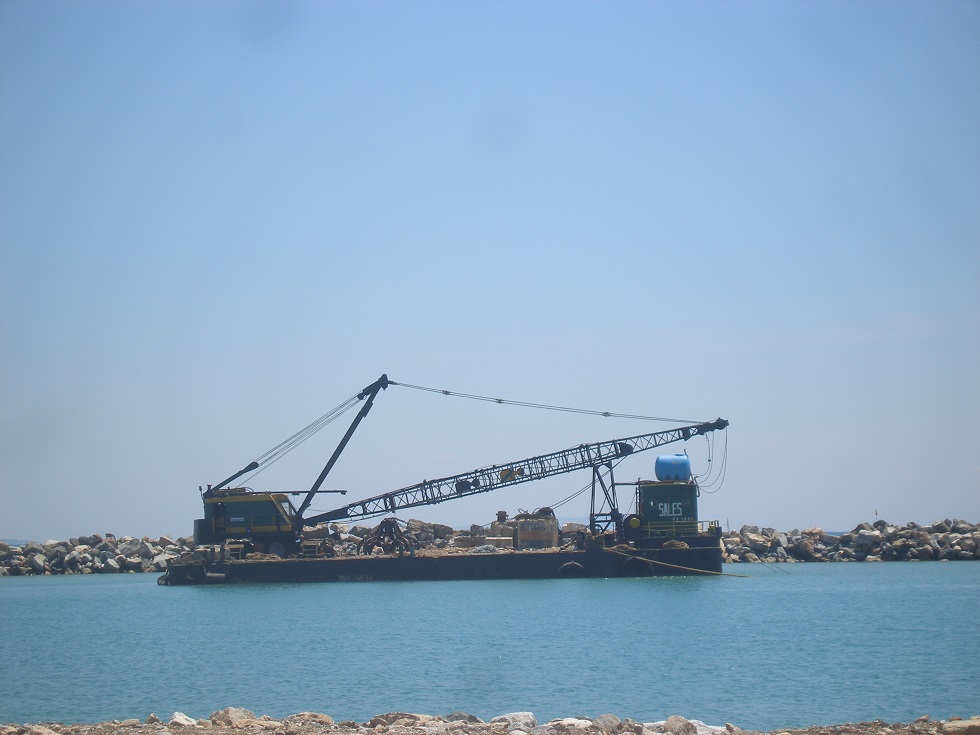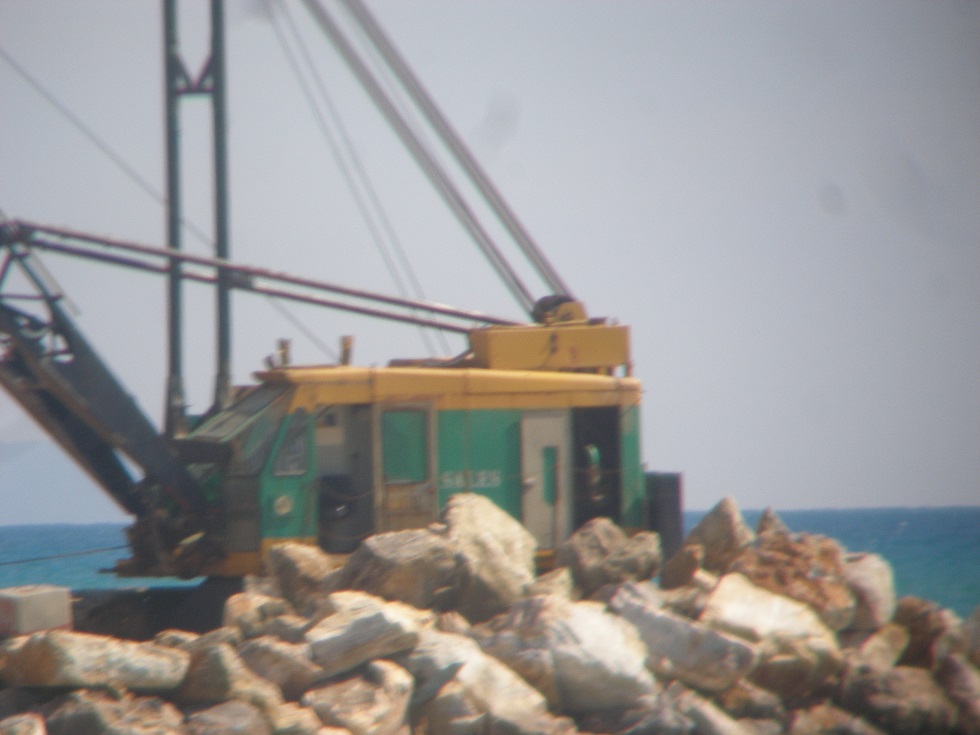 Link Belt Bagger von Sales (Livorno/Roma) beim Hafenbau. Fotos sind z.T. durch ein Fernglas fotografiert, weil mein Tele zu schwach war.
