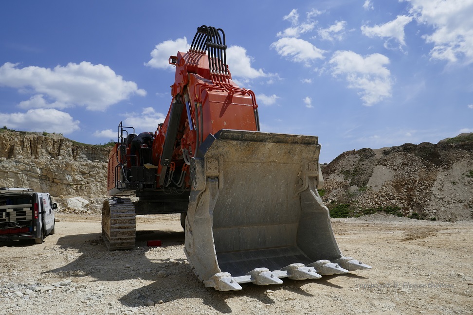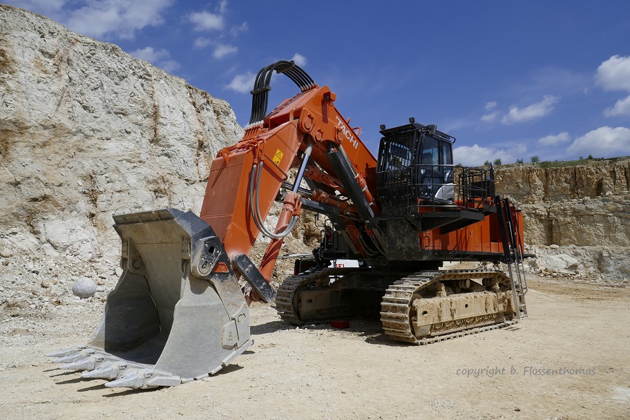 heute bei schönem Wetter wollte ich nochmals den 870er in Aktion fotografieren. Daraus wurde nix. Den 870er gibt´s da nicht mehr. Dafür ist nun, wie Andreas, Basti und Daniel, vermutet haben ein 890er Hochlöffel im Steinbruch tätig. Ich hab im Dezember letzten Jahres ein Bild von dem Bagger eingestellt, (bei 870 Hochlöffel) und bei dem schlechten Wetter auch nur ein´s gemacht. Leider nur von vorne und hab´ nicht gesehen daß da eine ganz neue Maschine steht. Nun hat´s aber heute geklappt. Zwar nicht mit Einsatzbildern, die Tankpumpe war defekt, aber immerhin. Der Bagger ist ziemlich genau ein halbes Jahr alt.