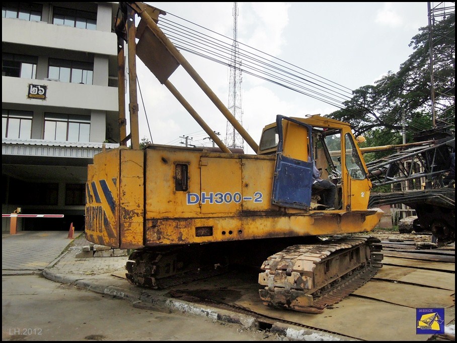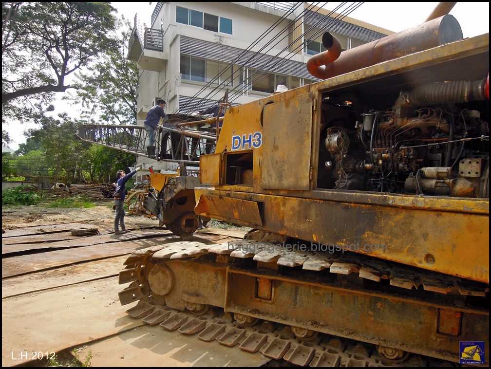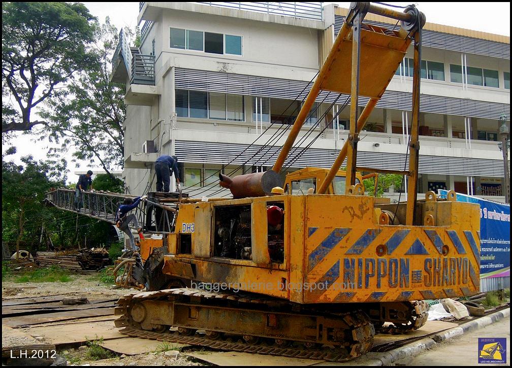 NIPPON-SHARYO Seilbagger Modell DH300-2 in Bangkok beim Aufbau mit einem Bohrgerät unter Zuhilfenahme eines weiteren Seilbaggers;