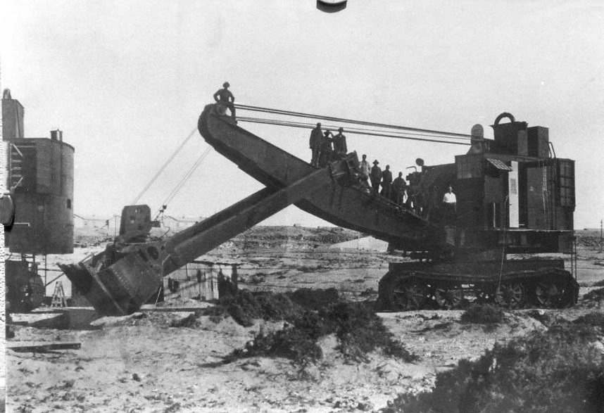 vielen Dank für die sehr guten Bilder. Das obere kommt mir bekannt vor, ich kenne es jedoch nur in einer sehr kleinen Abbildung. Die Aggregate der Schutzbelüftung sind deutlich zu sehen, der Träger des Deckenkrans ist auch interessant. Weißt Du, wie lange die Bagger im Einsatz waren?