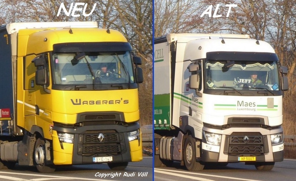 Die inneren Unterschiede sehen wir hier ja in der Regel nicht, aber von Außen kann man die neuen Typen schon gut von den alten unterscheiden. Das ist mir bei meinen letzten Autobahn-Foto-Sessions aufgefallen, wo man die Laster ja jeweils nur ein paar Sekunden auf sich zu kommen sieht.
