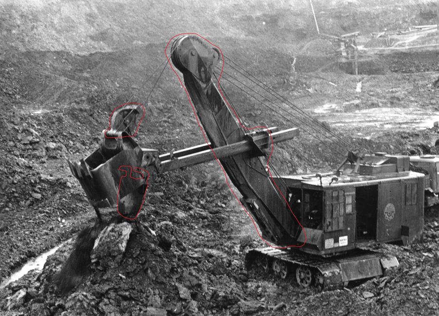 Im Museum Solvayovy lomy - Spolecnost Barbora http://www.solvayovylomy.cz/index.php?polozka=deu haben wir einen Seilbagger Ry-1 (der Nachfolger des Menck Mb2 in der Tschechoslowakei) mit Gittermast und Greifer. Wir möchten für ihn auch Hochlöffelausrüstung besorgen, damit wir können mehr Arbeit tun. In der Tschechei suchen wir schon mehr als 3 Jahre, leider, bis heute haben wir kein Erfolg gehabt, komplette Arbeitsausrüstung zu finden. Haben verschiedene Steinbrüche gerufen und besuchen, aber nur einige mehr oder weniger gebrauchte Teile hatten wir gefunden. Was fehlt uns noch, das ist auf dem SW Bild siehtbar.