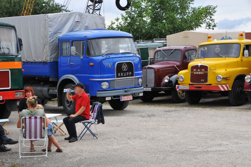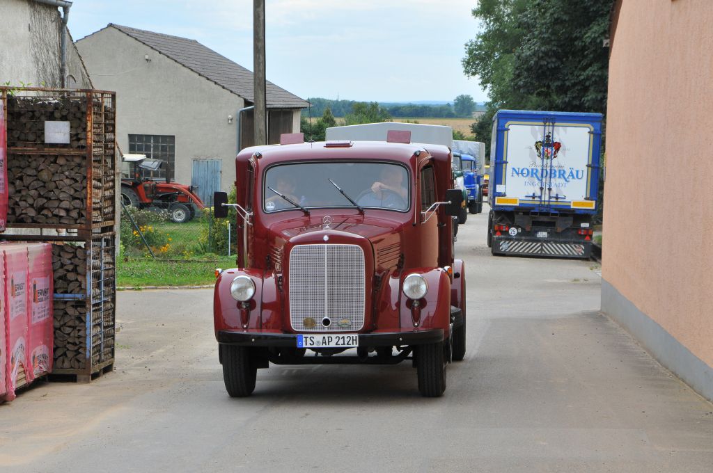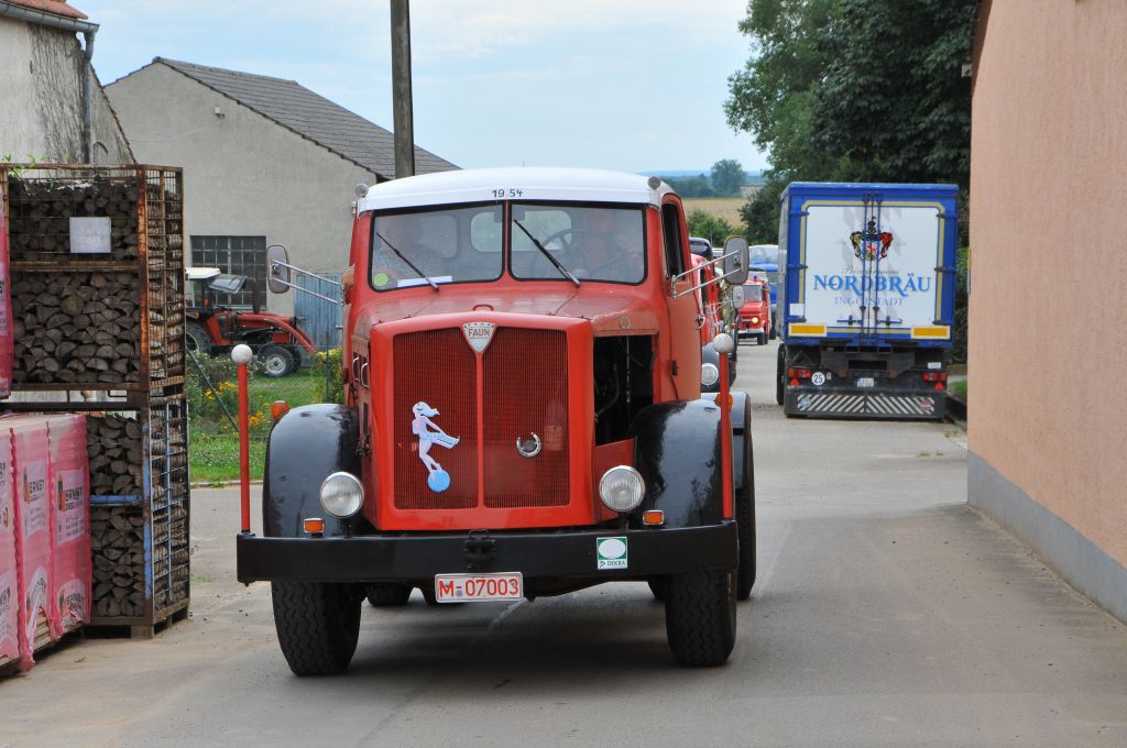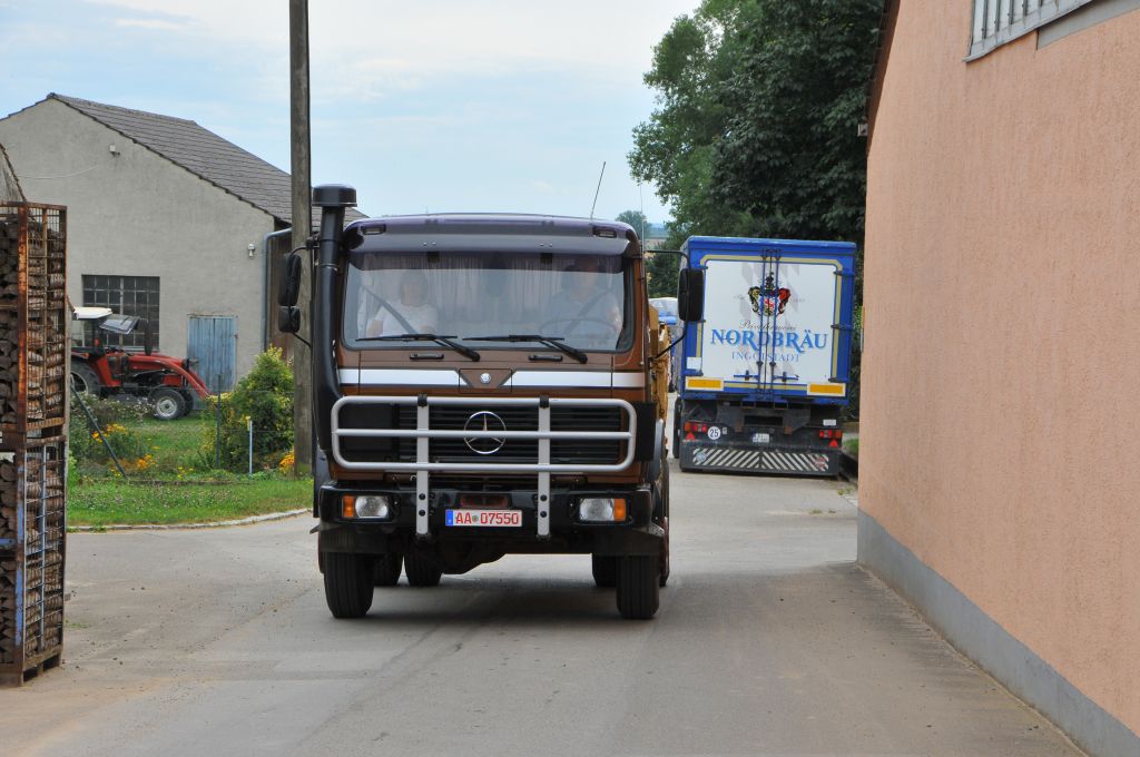 Der Großteil der Teilnehmer kam am Samstag morgen hier in Neuburg an, es waren rund 50 historische Nutzfahrzeuge vor Ort. Speziell dieses Jahr hat mir persönlich die Vielfalt der LKW sehr gefallen. Fahrzeuge aus den 1950er Jahren bis zu den frühen 1980er Jahren waren Vertreten. Von Kaelble & Faun, über Mercedes und M.A.N, bis hin zu Tatra und Scania daumen