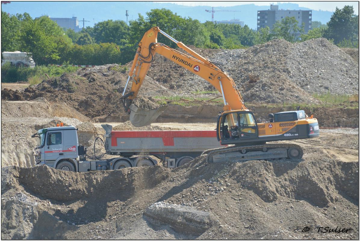 480LC 9R in voller Aktion auf einer interessanten Baustelle in der Nähe von Basel.