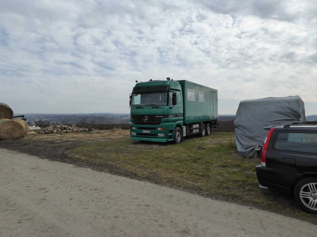 Gekauft haben wir den Actros schon letztes Jahr im Oktober, allerdings lief da nicht alles glatt, 3 Tage vor Abholung ist unser angedachter Stellplatz nicht mehr verfügbar gewesen, wir haben in der Woche des Abholens ein Auto verloren, während das andere in der Werkstatt stand, hatten eine Lebensmittelvergiftung und eigentlich Flitterwochen.