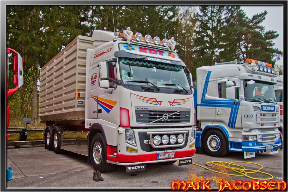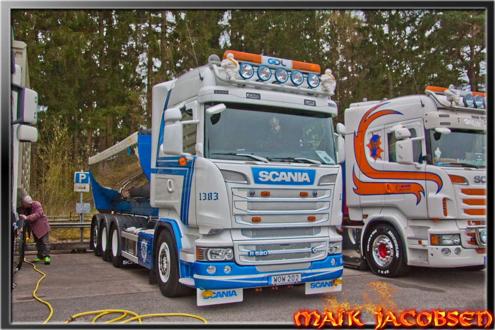 Letztes Wochenende fand im Schwedischen Kristianstad ein Truckmeet zugunsten Krebskranker Kinder statt. Auch meine Wenigkeit wurde dazu eingeladen. Ich habe mich mit einem der Veranstalter unterhalten, und er teilte mir mit das Alles was dort eingenommen wurde prozentual den Kinder zugunsten kommt. Ebenso wurd darauf verzichtet Standgebühren und Eintritspreise zu erheben. Die einzigen die zur Kasse gebeten wurden waren Aussteller aus der Wirtschaft wie Scania, Volvo, DAF usw. Am 1ten Mai spielte eine Liveband die ihre Gage ebenfalls komplett der Krebshilfe gespendet hat. Das Gelände selbst ist ein ehemaliges Militärgelände das mittlerweile von der Stadt Kristianstad verwaltet wird und ein wenig Industrie dort angesiedelt hat. Die Stadt hat den Veranstaltern den Platz kostenlos zur Verfügung gestellt, inkl einem Gebäude wo die anwesenden Fahrer und Fahrerinnen sich zu gewissen Zeiten duschen konnten... Kostenlos. Ein Bekannter von ihm hat bei einer Firma mit Miettoiletten nachgefragt ob sie für den Publikumsverkehr 3 bis 4 Toiletten mieten könnten, als die Geschäftsleitung von dem Hintergerund des Meeting erfuhr, bekamen sie nicht die geforderte Anzahl der Toiletten, sondern einen Lkw voll mit jenen Plastikhäuschen. Kostenlos... Das einzige worum die Veranstalter gebeten hatten, war das die Besucher und Fahrer/innen eine kleine Spende in die Sammelbox taten. Auch in Sachen Sauberkeit können unsere Kollegen noch ein wenig dazu lernen... Es wurden Plastiksäcke verteilt um den anfallenden Müll nicht planlos liegen zu lassen, sondern ihn gleich anständig zu beseitigen. Ebenso wurden Kartons mit Säcken aufgestelt damit auch Besucher ihre Getränkebehälter und sonstigen Unrat entsorgen zu können. Sehr Vorbildlich. Im Ganzen läßt sich sagen das es eine rundum tolle Veranstaltung war. Ich beginne mit Bildern vom Donnerstag Nachmittag als die ersten Fahrzeuge ankamen.... Hoffe ihr habt ein wenig Spaß an den Bildern, ich denke mal das dort oben keiner aus dem Forum vor Ort war...