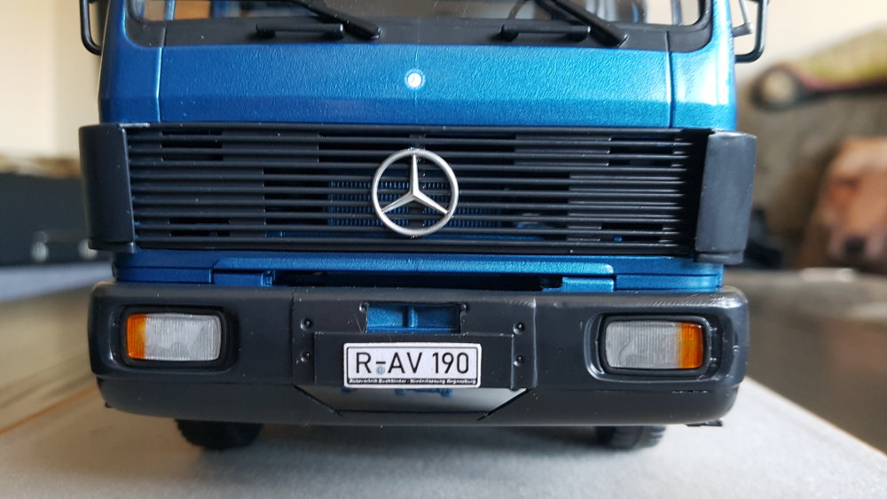 Vor allem wundert mich, das dieses Modell welches im Auftrag von Kässbohrer für Buchbinder 1993 ohne Extras bzw. mit schwarzen Kotflügeln / Stoßstange als 1726er mit dem damals "echtem" Kennzeichen ohne Dekor gebaut wurde. Jedenfalls wurde er so bei der Manufaktur bestellt, und die Firma ist bekannt für Einzelstücke nach Fotovorlagen / Werkszeichnungen. Möglich das es damals als Leasing LKW für einen Kunden bestimmt war hmm