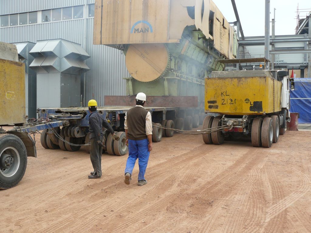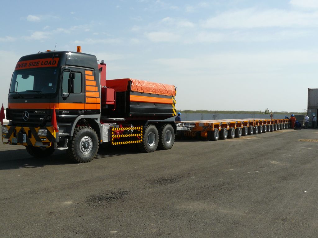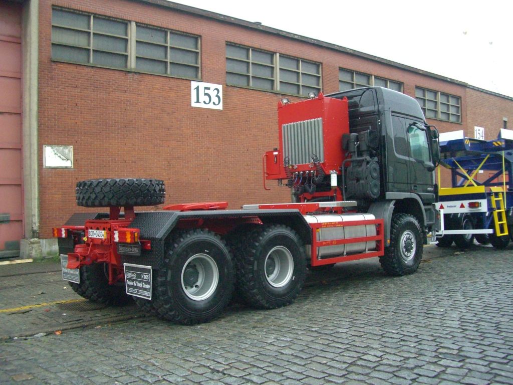 Ganz einfach die zweite Zugmaschine paralell zum Anhaenger gestellt und an diesem mit einem Stahlseil festgemacht.