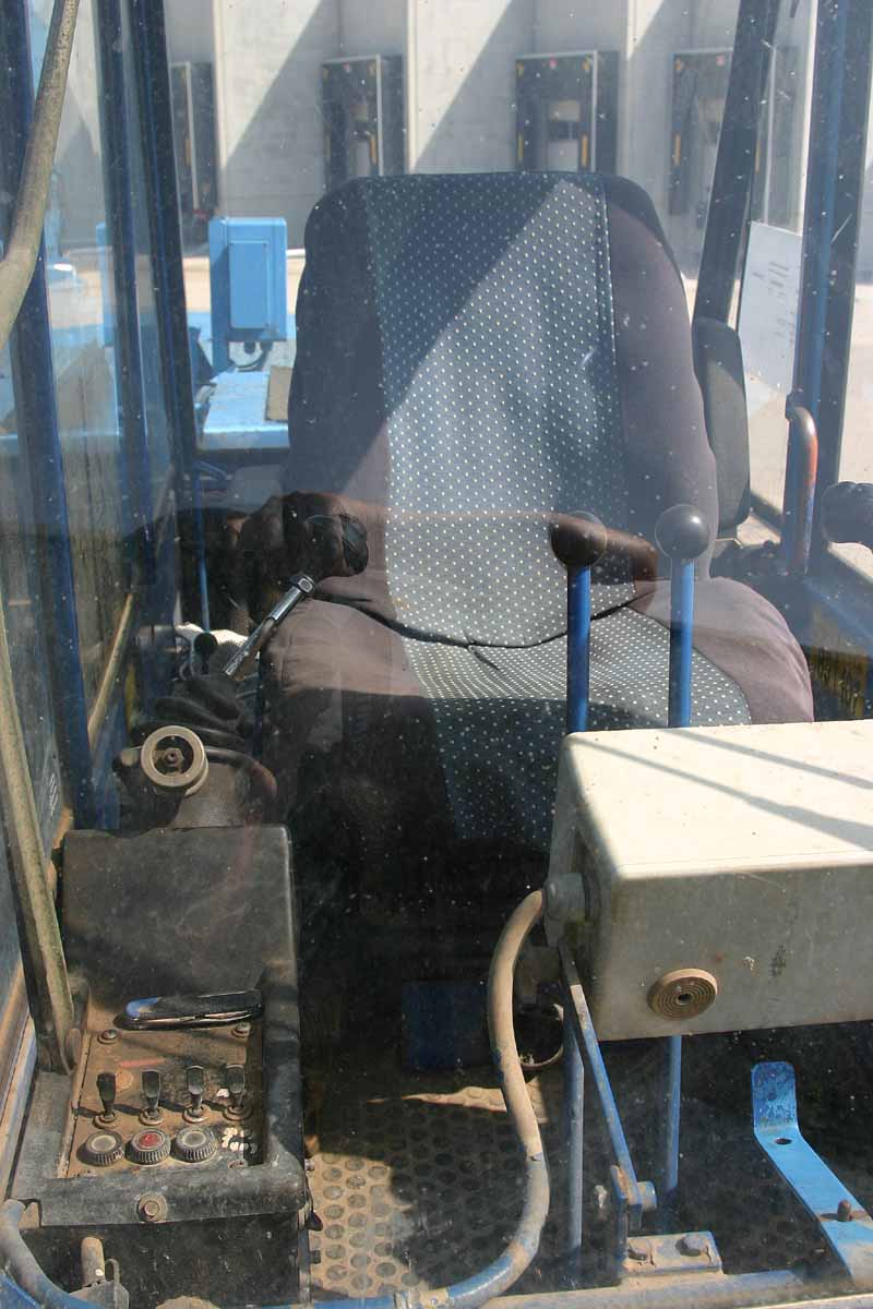 Die Maschine verfügt über ein Verstellfahrwerk und intetessante Platten auf dem Laufwerk, in diese Kunststoffprofiele eingesetzt sind, zum schutz des Bodens