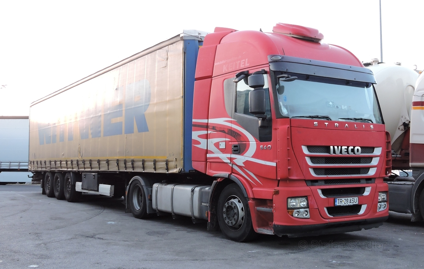 Vermutlich bereits veräußerter Auflieger von WITTWER mit einem Stralis 540, ehemals aus den Beständen der Fa. Keitel aus Geslau jetzt zugelassen im rumänischen Kreis Teleorman