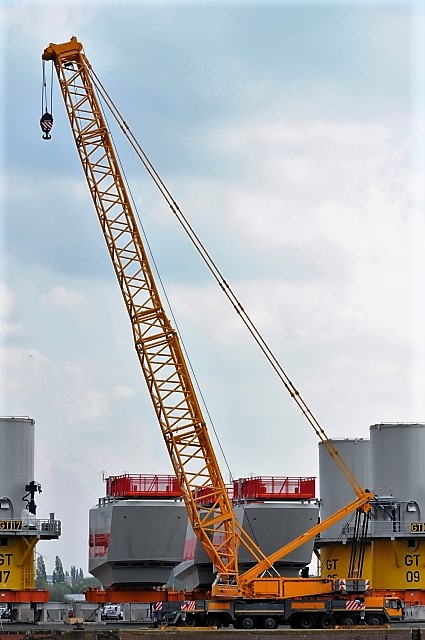 der Gittermastkran müsste der ehemalige Kran K 6oo1 der Fa. Paul Rosenkranz gewesen sein. Eine Eigenkonstruktion der Firma.