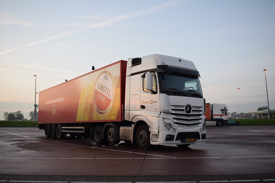 2) Ein Mercedes Benz Actros 2545 Gigaspace den ich an einem Parkplatz an der A12 nahe Woerden fotografiert habe, unterwegs für Amstel Bier