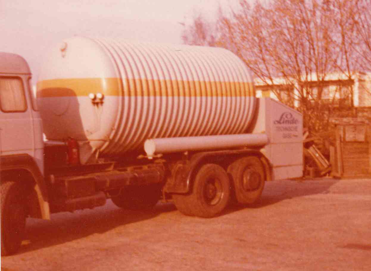 Zu den Tankaufliegern und Tankaufbauten auf Solofahrzeugen und deren Hängern mit der Wellblechform möchte ich noch anmerken, dass diese erst Mitte bis Ende der 70er Jahre aufkammen und selbst von Linde gebaut wurden und meist bei einer Namenhaften Spedition Klaeser in Nachbarschaft des Linde-Standorts Herne überholt wurden. Diese in eigenregie gebauten Tankaufbauten und -Auflieger waren "Gewichtsoptimiert je für den Transport von Sauerstoff oder Stickstoff, wobei die Stickstofftanks wegen dessen geringeren Gewichts größer waren. Erst neuere und die von der AGA übernommene Auflieger und Tankaufbauten sind wieder mit glatten Tankaufbauten und haben wohl einen Einheitsgröße.