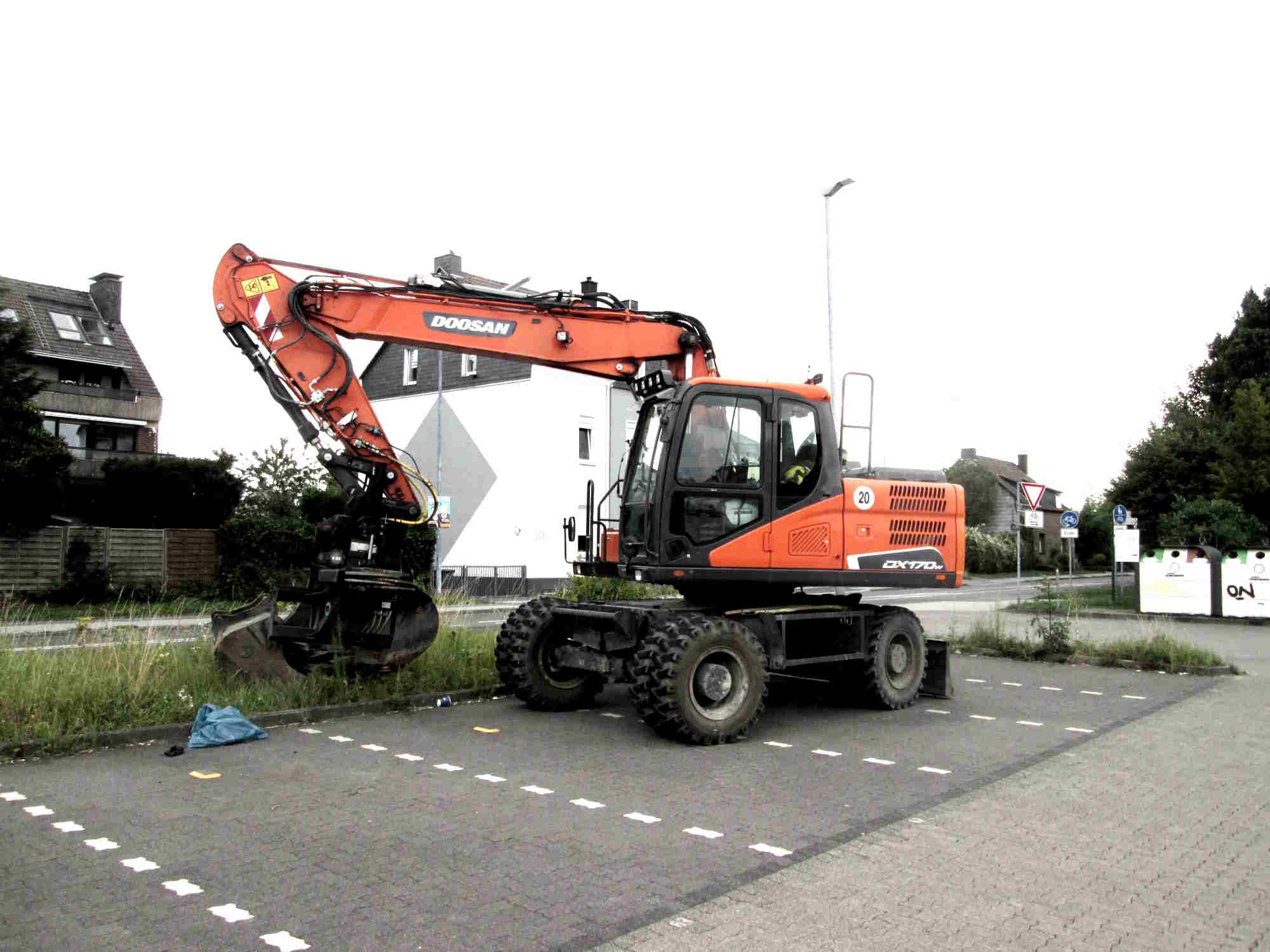Hab hier auch mal einen Doosan, DX 190 W, mit hydraulischen Verstellausleger.