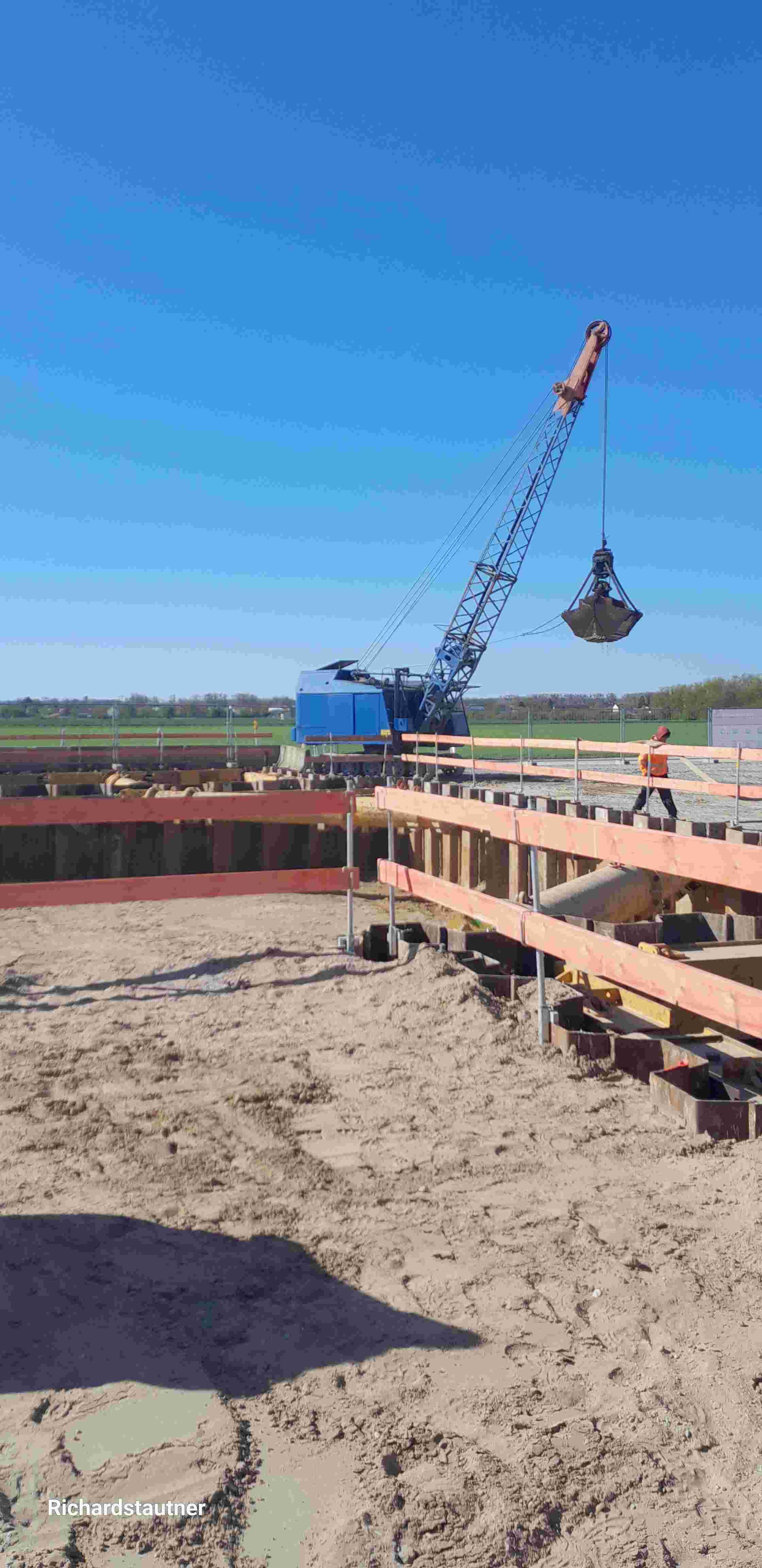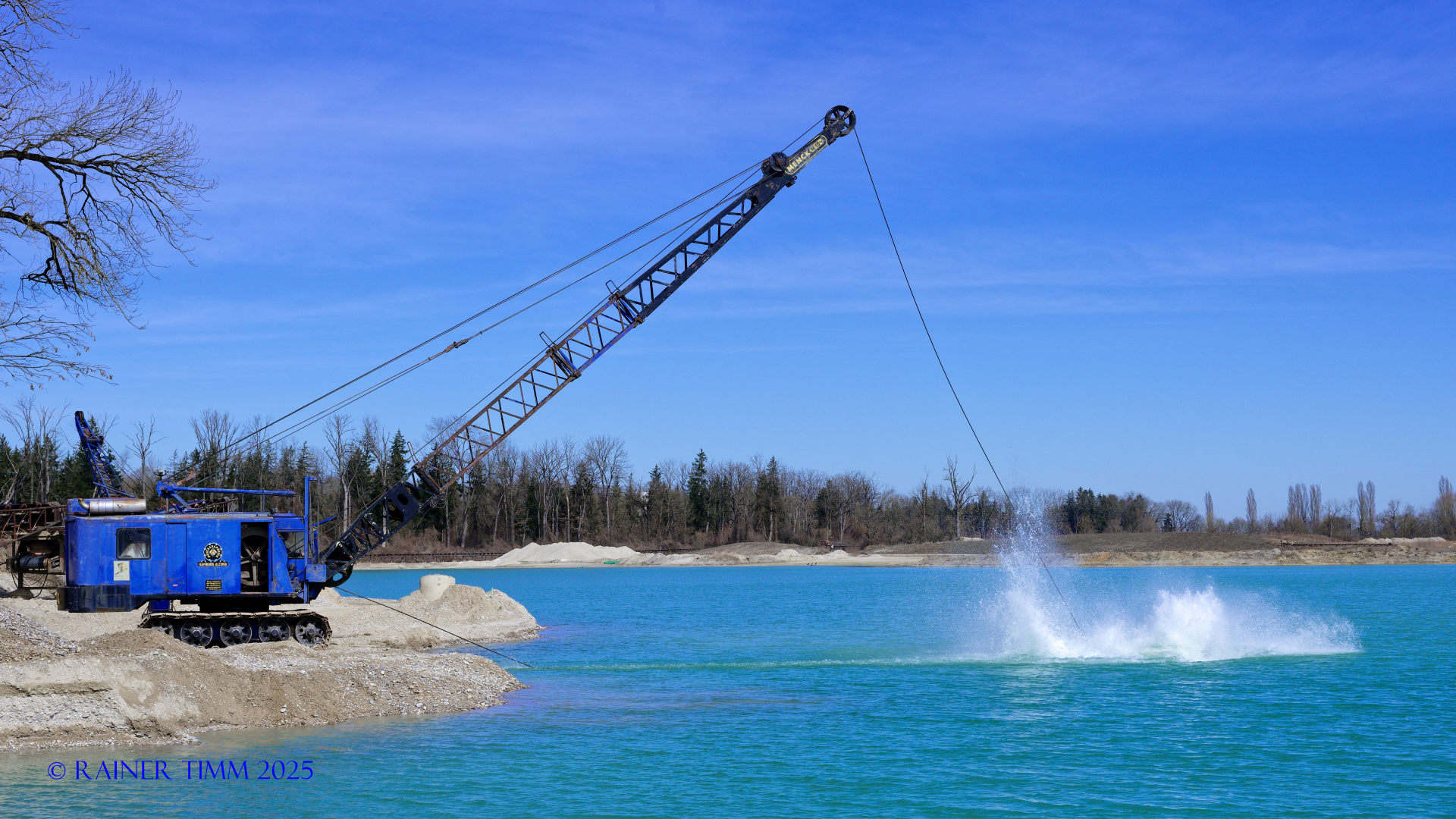 Immer schön, die alten Geräte in Aktion zu sehen, hier passen sogar Bagger, Wasser und Himmel farblich zusammen klatsch